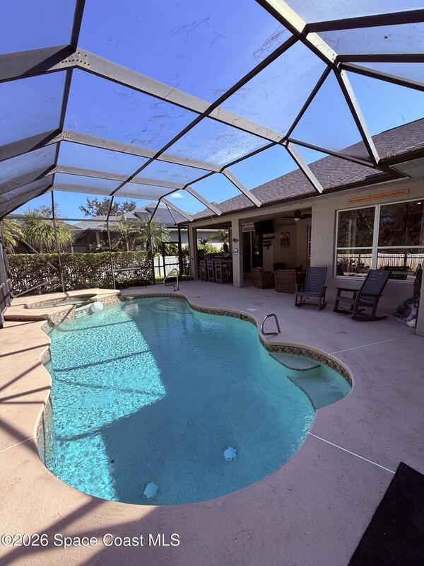 MOVE-IN READY 4/3 gem with pool in Magnolia Park at Bayside Lakes! Home features high end upgrades! Spacious open plan! Laminate and LVP throughout - no carpet! Kitchen has been remodeled and features sleek quartz countertops, newer stainless appliances, and large walk-in pantry. Bedrooms and closets are very spacious. Bathrooms updated for a modern look. Pool area is perfect for entertaining - large screened deck, jacuzzi and 20'x20' fire pit/paver deck space. Yard is fully fenced and backs to protected nature preserve for extra privacy - no neighbors behind. Huge money-saver alert: Newer roof and solar system--only 2 years old! 61-panel oversized solar setup covers90% of your electric bill (often produces more than you use--hello, credits!). Water heater and AC have been replaced within the last 5 years! Exterior painted in 2021. This one-of-a-kind, turn-key beauty in the desirable gated Bayside Lakes community is truly move-in ready and a rare find. Will not last!