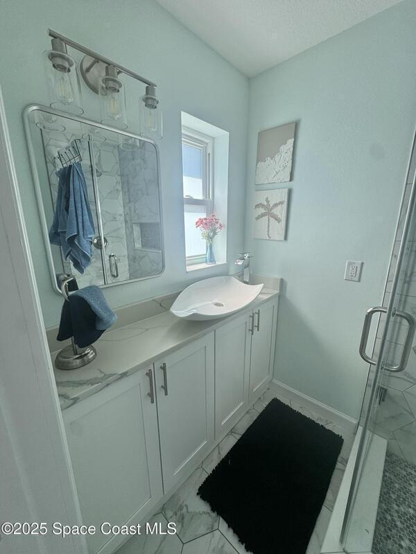Escape to your perfect coastal retreat! This beautifully remodeled 3-bedroom, 2-bathroom unit is part of an exclusive 3 separate unit home located in the highly desirable beachside area of Satellite Beach. You are just steps away from the sand and surf in this exceptional location. This is the spacious bottom unit, featuring a contemporary, open-concept design perfect for modern living with 3 Bedrooms, 2 Bathrooms and Plenty of space for family, guests, or a home office. As part of the larger property, you'll have access to the beautiful shared outdoor space, which includes a fenced yard with a relaxing tiki hut and your own 2 car garage!