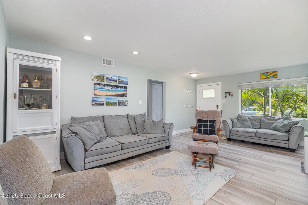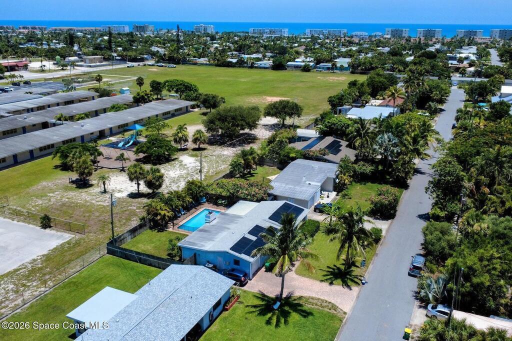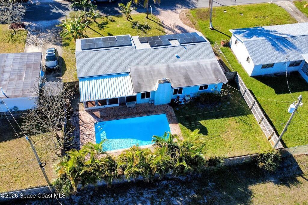 Updated 4-bedroom, 2-bath beachside pool home just blocks from the ocean! This move-in-ready home features an open-concept floor plan with an updated kitchen offering granite countertops, stainless steel appliances, and wood-look tile flooring throughout. Both bathrooms have been beautifully remodeled. Major upgrades include a new roof (2024), AC (2019), energy-efficient windows (2019), hurricane shutters, and a 100% paid-off solar system providing excellent energy savings. Step outside to your private backyard oasis with a generously sized pool, brick paver decking, gas pool heater, and a large screened enclosure--perfect for entertaining. The fully fenced yard adds privacy and peace of mind. Ideally located on a quiet dead-end street just 1/2 mile from beach access, with easy access to schools, shopping, restaurants, and the Pineda Causeway. Whether you're looking for a full-time residence or the perfect vacation retreat, this home offers the best of beachside living.