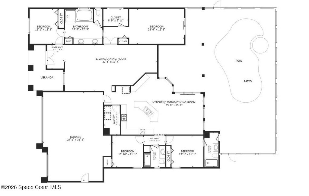 Bedroom 2 , Bedroom 3 , Bedroom 4 , Kitchen , Laundry , Living Room , Primary Bedroom