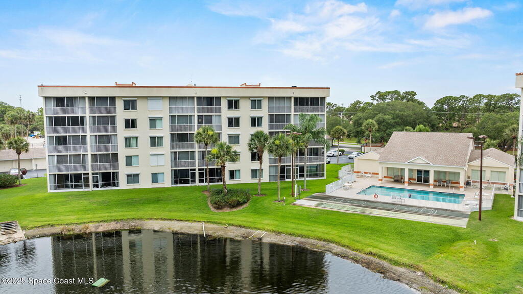 Quiet 4th-floor 2-bedroom, 2-bath condo with detached 1-car garage in the desirable 55+ Carmel Community. Bright unit features hurricane-impact windows and shutters, new flooring, quartz kitchen, stainless steel appliances, laundry hookups inside unit, nearby trash chute, and a screened balcony with peaceful pond views. Enjoy truly low-maintenance living with a most-inclusive HOA covering water, sewer, trash, cable, internet, Disney+, insurance, lawn care, pest control, and exterior maintenance. Community offers a clubhouse, pool, fitness center, library, billiards, and social activities. Milestone inspections complete and elevators updated. Convenient to Viera shopping, dining, medical facilities, trails, beaches, I-95, and less than an hour to Orlando.