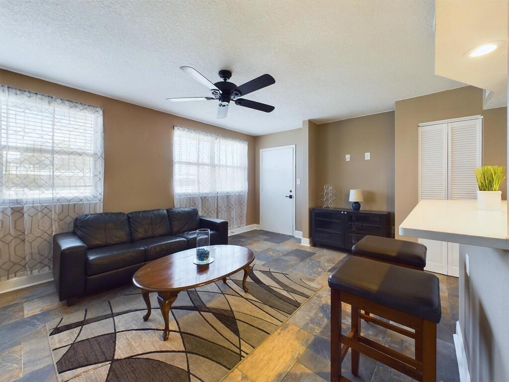 Completely renovated 1 bed 1 bath fully furnished end unit lots of natural light. Full IKEA kitchen, cookware, dishes, microwave, dishwasher. Bath has tub & shower. Ceiling fans & central A/C. Storm rated windows! 2 storage units & assigned parking. The grounds are full of trees & green foliage with benches to relax & enjoy. A large community pool & shuffle board. Laundry 2 locations on site. 5 mins. to the ocean & Port Canaveral. Close to shopping, restaurants & Cocoa Beach Pier. 45 minutes to Orlando airport, Disney & area attractions. MOTIVATED SELLER!Great opportunity for an investment/rental property!