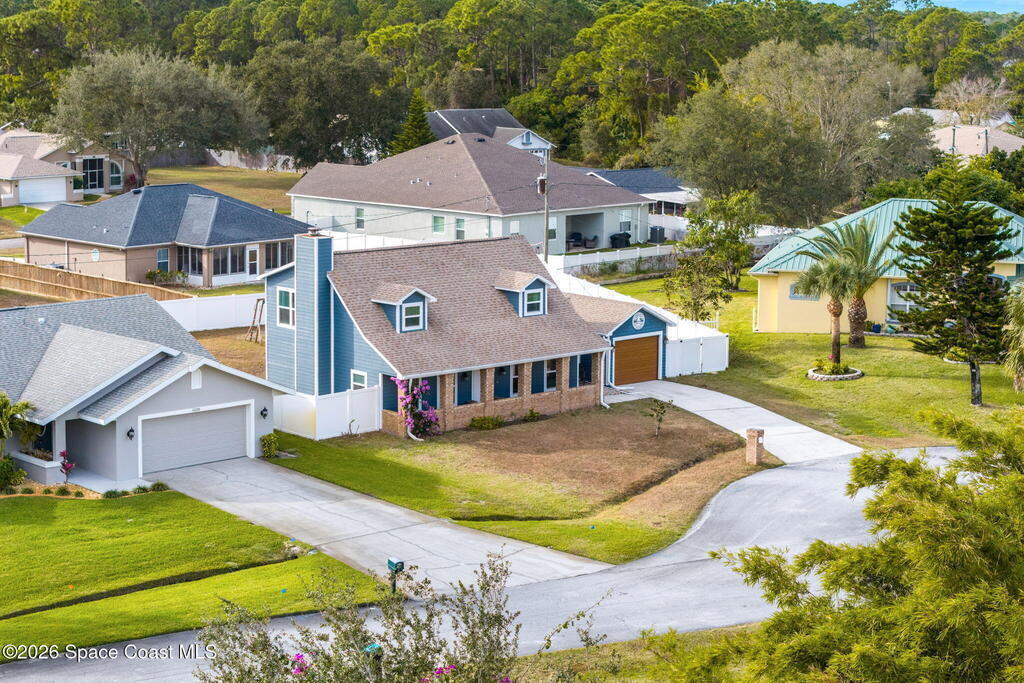 Beautifully renovated and full of character, this 2-story Palm Bay home blends modern comforts with a welcoming, lived-in charm. The new custom kitchen features solid wood cabinetry and quartz countertops. New flooring throughout the lower level. The primary bedroom is conveniently located downstairs and includes a beautifully renovated en-suite bath with a walk-in shower and a freestanding soaking tub. Upstairs, you'll find two additional bedrooms and a full bathroom, perfect for guests or family. Tucked away on a quiet cul-de-sac, this home also includes hurricane impact windows throughout, new Hardie board siding, an updated septic system, a new hot water heater, indoor laundry, city water, and more! Spacious backyard, fully enclosed with a vinyl fence. Schedule your tour today.