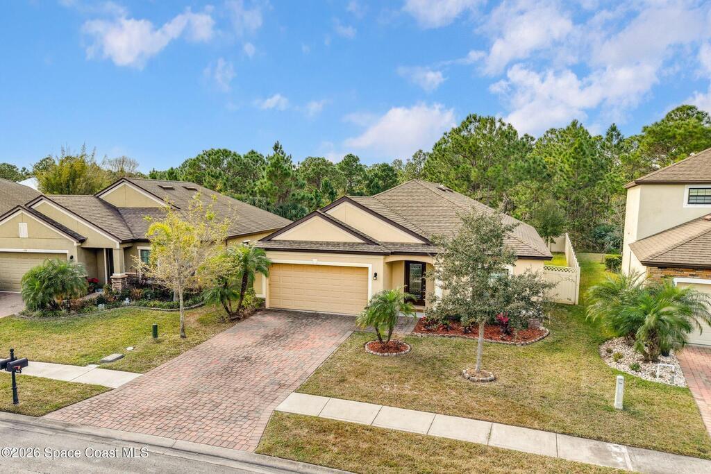 Come see everything this Palm Bay home has to offer! A bright and open living space makes it the perfect place to host guests or a comfortable space to relax in. From the moment you walk in, you are greeted with the great room, flooded with natural light, as well as French doors to an office/multi-use space, as well as the back patio. The massive island in the kitchen makes both of these easier than ever, along with upscale appliances that allow you to appreciate your new space. New paint has been applied inside and out, along with fantastic upkeep to make this 2017 home feel brand new. The primary bedroom has one of the most desirable layouts you can find, with dual walk-in closets and a split dual vanity in the bathroom, sure to give you a lavish feel. The Extravagance continues into the secondary bathroom, with another dual vanity. Don't miss the opportunity to make this impeccably maintained, move-in-ready gem your own!
