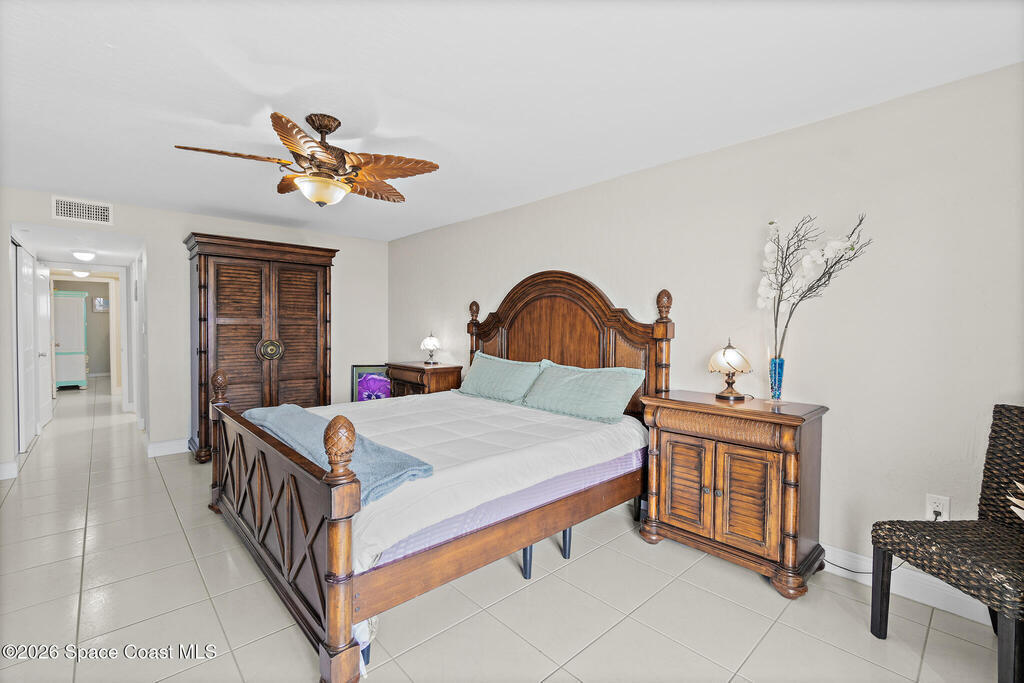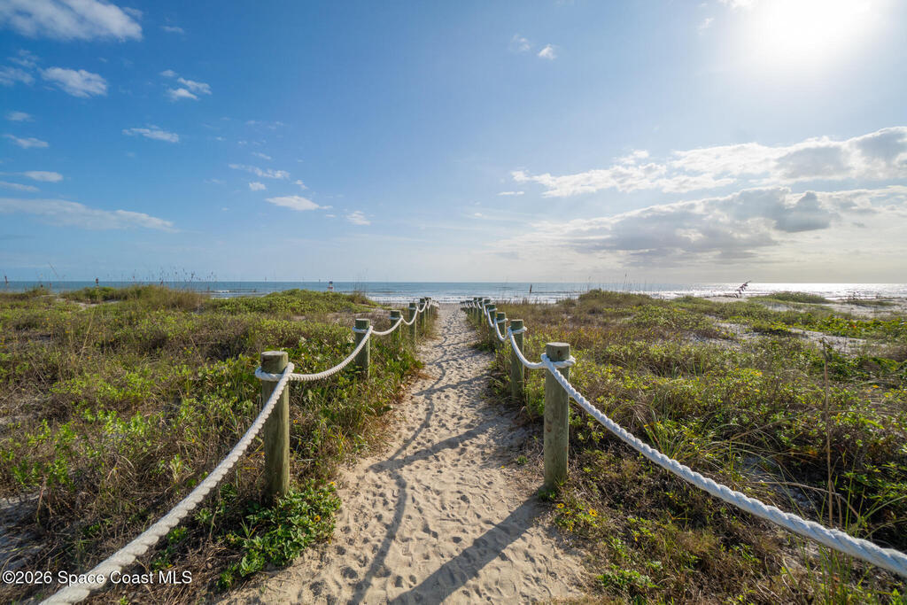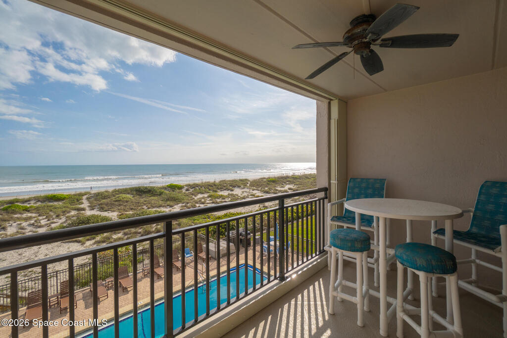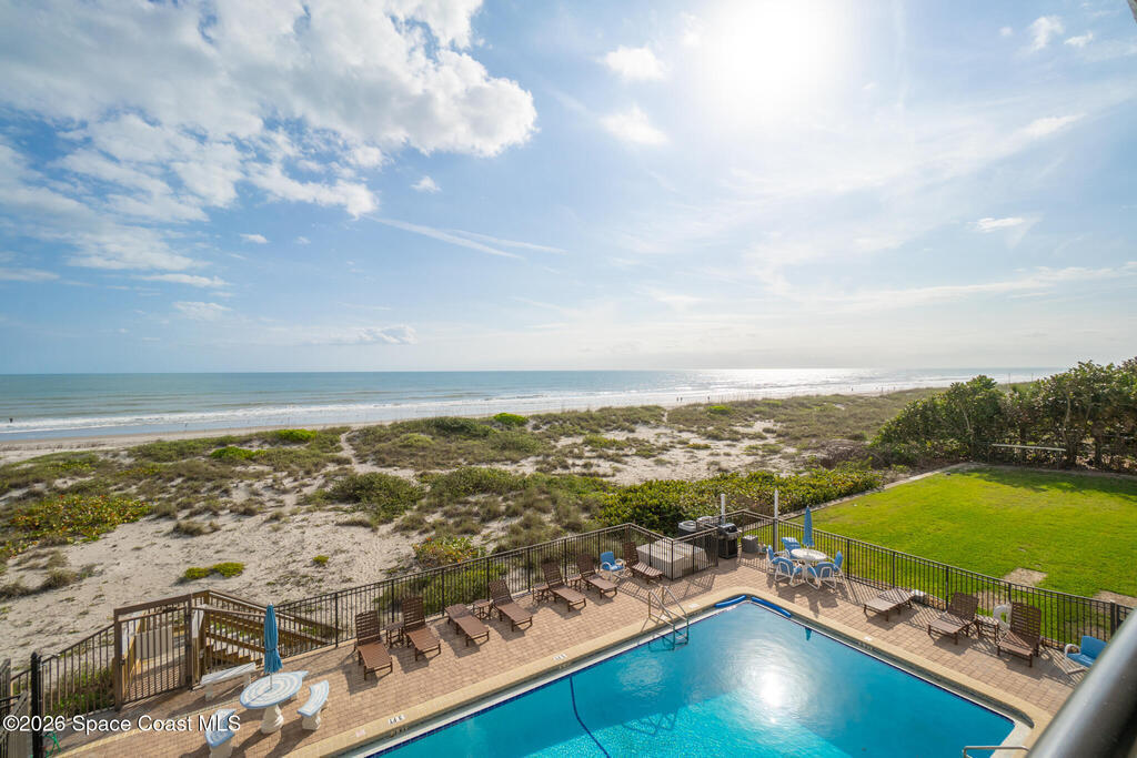 BIG DOGS WELCOME! STOP scrolling through ''one small pet only'' listings--this rare DIRECT oceanfront beauty welcomes BOTH your dogs. Golden Retrievers, big mutts, size doesn't matter. Located in sought-after Cocoa Beach, close to shopping/dining without the downtown hustle, this condo offers stunning sunrises and sweeping ocean views from nearly every room. Watch rocket launches from your spacious balcony with new decorative concrete floor and storm shutters. The kitchen features granite counters, stainless appliances and abundant storage. Open living/dining areas provide room for everyone. The expansive primary suite includes 3 closets (one walk-in), updated bath & nonstop ocean views. The roomy guest bedroom and full guest bath with walk-in shower ensure comfort for visitors. Tile throughout, full-size washer/dryer, 2021 HVAC, on-demand hot water, heated pool, sauna & private access to an uncrowded dog-friendly beach make this property truly special. Don't miss out!