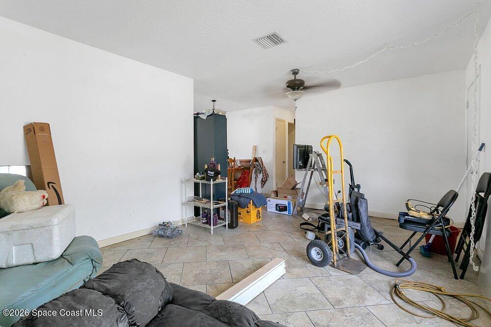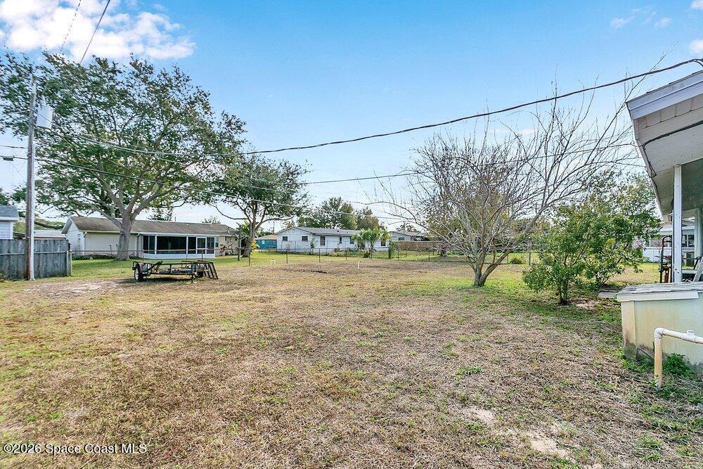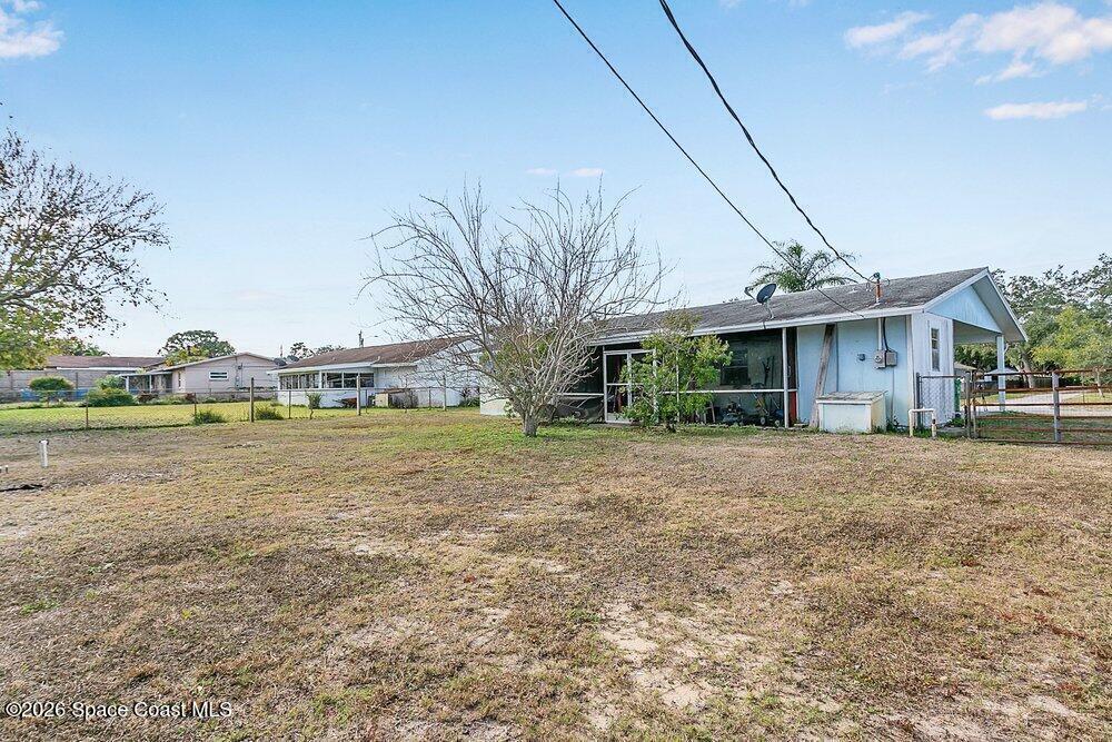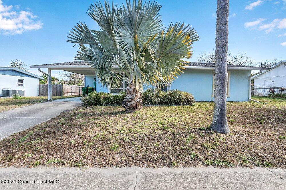 Solid concrete block home on slab featuring 2 bedrooms and 2 full baths, central A/C, and a carport. Approx. 894 sq ft of living area on a ~0.23-acre lot. Enclosed utility/sunroom area has flexible space for storage, workshop, or potential expansion (buyer to verify). Convenient Cocoa location near shopping, schools, and major routes. Delivered vacant at closing. Refrigerator and stove do not convey.