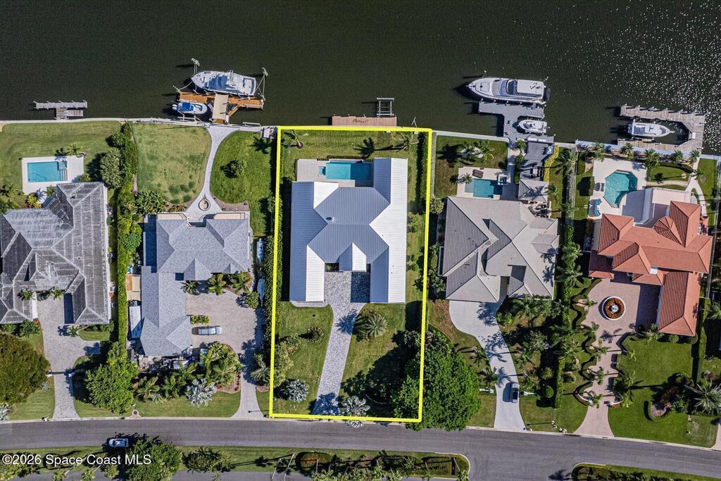 NEW CONSTRUCTION-Custom Built Masterpiece on Direct Deep Water with 2018 Seawall, Dock & Boat Lift. Step into Luxury along The Breathtaking Indian River, home features 4 bedrooms, 41/2 baths with Study/Den. Impact Windows & Doors, Metal Roof, 4 Car-Garage, Infinity Edge Salt Water Pool with Spa and much much more. Modern Elegance with Coastal Charm.