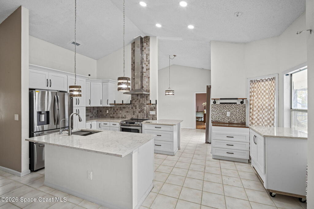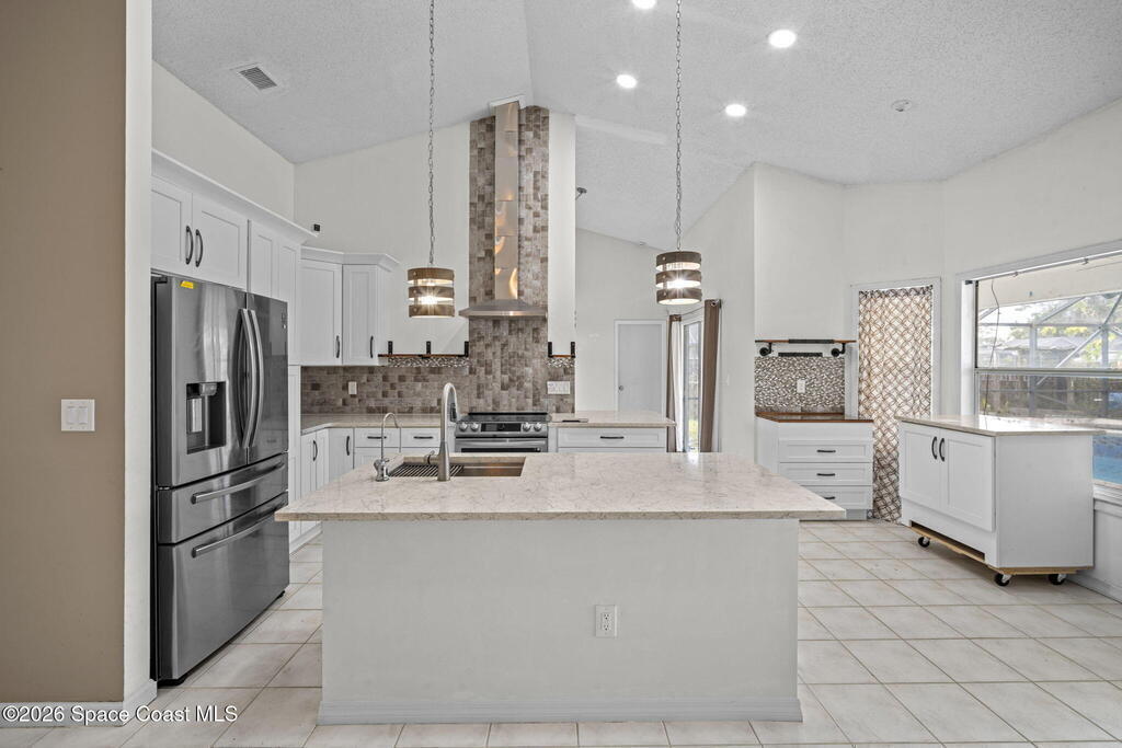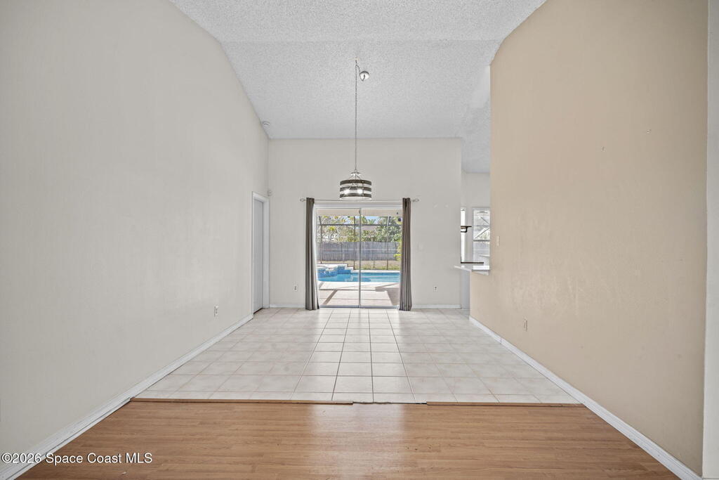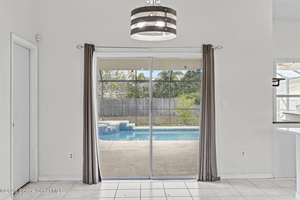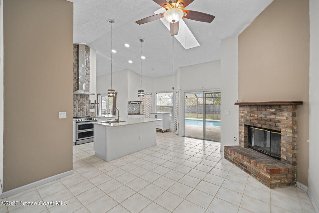 Welcome to this inviting 3-bedroom, 2-bath, 2-car garage screened pool home with spa. Tile and laminate flooring run throughout, creating a clean and cohesive feel. The updated open kitchen is the heart of the home and features granite countertops, a center island, ample cabinetry, and clear sightlines to the living areas. Formal living and dining rooms provide ideal spaces for entertaining, while the spacious family room offers a cozy wood-burning fireplace. The guest bathroom has been updated with modern finishes. Step outside to the heated screened-in pool and spa, complete with a new heater and self-cleaning system for easy maintenance and year-round enjoyment. The fully fenced backyard offers privacy and room to relax or play. Additional features include a new garage door with opener.