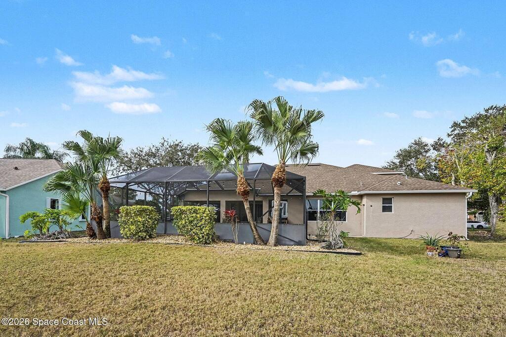Welcome to THE SAVANNAHS where Space Coast living meets everyday adventure! Enjoy spectacular rocket launches from your own backyard oasis at this 4 BED 2 BTH residence in the heart of North MERRITT ISLAND. The spacious kitchen opens to the family room with serene views of the SPACE COAST GOLF CLUB while separate living & dining areas provide ideal spaces for entertaining. The first-floor primary suite offers direct access to the covered patio & SALTWATER POOL creating a true indoor-outdoor retreat. High ceilings and a thoughtfully designed floor plan support today's active lifestyle, including an upstairs bedroom & bath--perfect for guests or a home office. Outdoor living shines with a tranquil screened enclosure and ample space for family gatherings. Additional highlights include an oversized 2 CAR garage & circular driveway for extra parking. Community amenities feature tennis courts and a playground, all with excellent proximity to Blue Origin, NASA, Port Canaveral & Orlando!