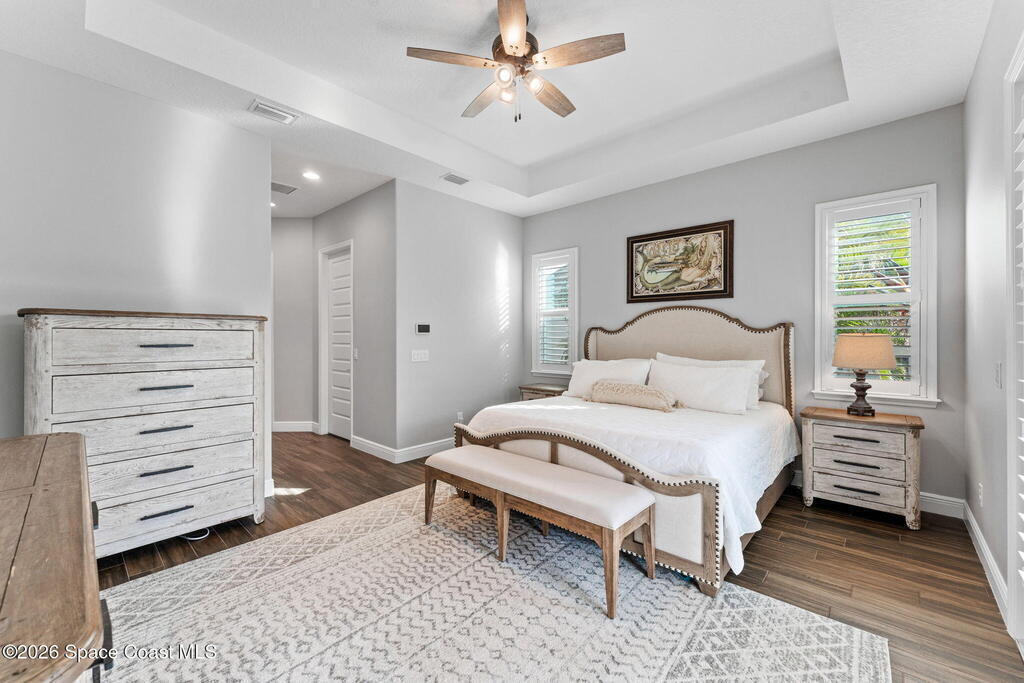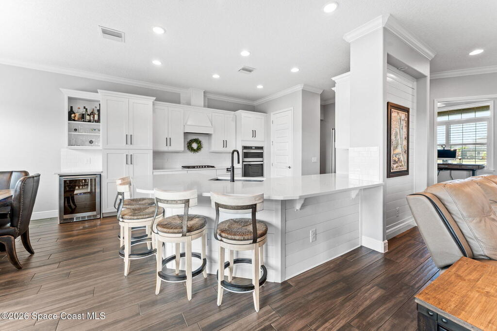 Welcome to a gated showstopper where style, space, and smart design collide. This 3 bedroom + 1 flex, 3-bath stunner serves up an airy open floor plan made for entertaining, everyday living, and everything in between. The kitchen brings the WOW - new countertops, breakfast bar, eat-in space, and a built-in wine cooler ready for your best pours. Split bedrooms keep things private, while the primary retreat flexes with his-and-hers closets and true owner-suite energy.Plantation shutters, walk-in closets, tankless water heater, whole-home generator, security system, smart doorbell, and manual storm shutters deliver comfort, efficiency, and peace of mind. A 3-car garage means room for all the toys, and the aluminum-fenced yard is perfect for pets, play, or sunset unwinding. Surrounded by resort-style community amenities, zoned for A-rated schools, and minutes from top golf courses, shopping, and dining-this isn't just a home, it's a lifestyle upgrade.
