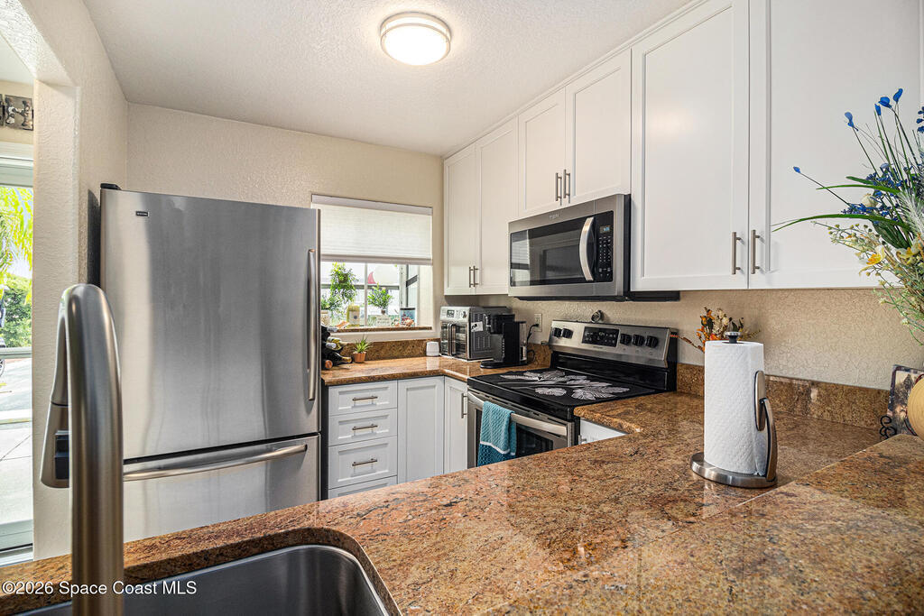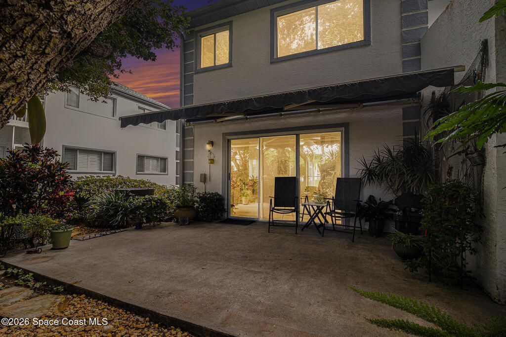 Rare 2BR/2.5BA end unit with bump-out in The Villages of Seaport! Located in the 600 block, just steps from private beach access. Features granite countertops, SS appliances, 42'' soft-close cabinets, ceramic tile floors, and furnished (with exceptions). Enjoy an electric awning, lush garden, and oversized patio for outdoor living. Resort-style gated community offers 3 pools, clubhouse with ocean-view deck and weight room, tennis/pickleball courts, and private beach access. Minutes from Port Canaveral, Kennedy Space Center, and ideal for SpaceX/Blue Origin employees. Don't miss this coastal gem!