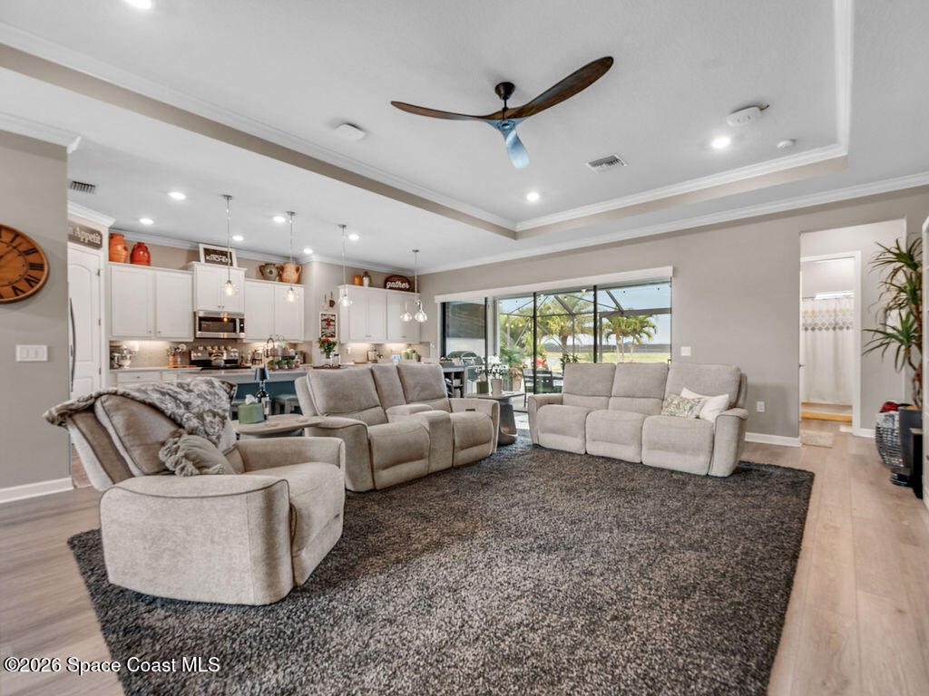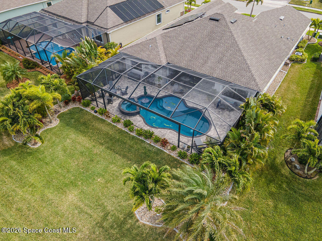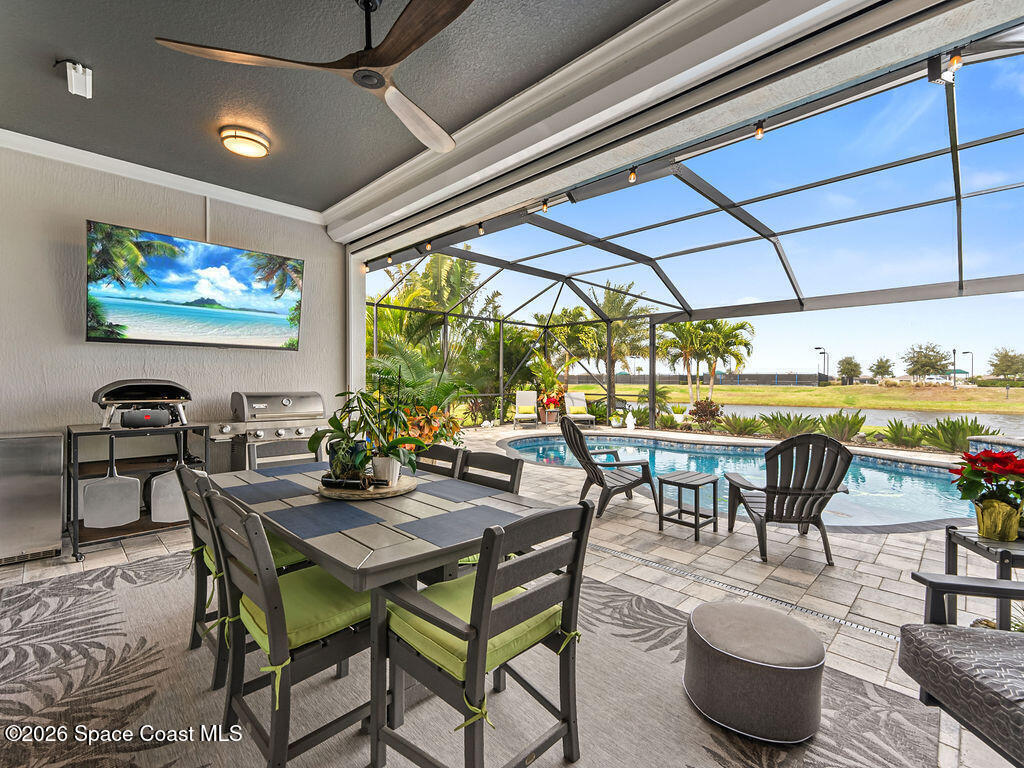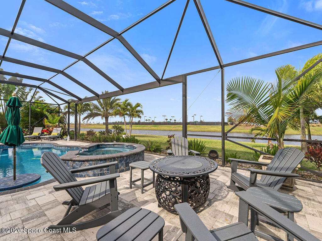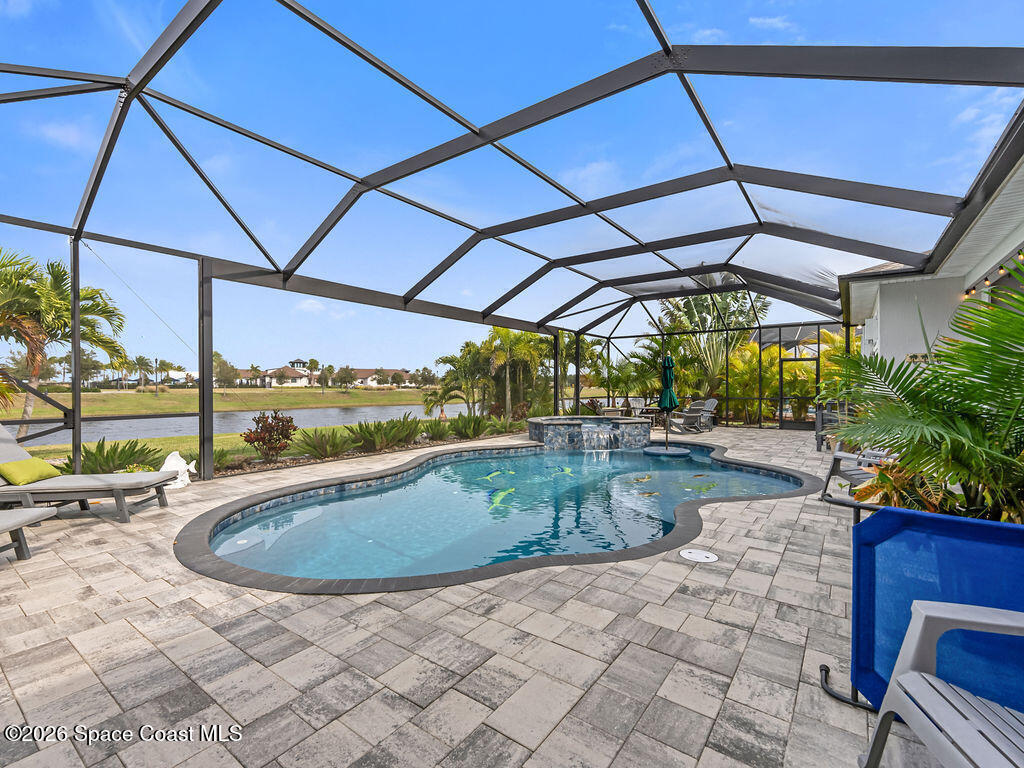 Welcome home to relaxed waterfront living in this stunning 4-bedroom retreat nestled within a premier 55+ Central Viera community. Sun-filled open spaces and three full baths create an easy, comfortable flow, while the private heated pool and spa invite quiet mornings and sunset evenings by the water. Move-in ready with extras already in place - accordion storm shutters, paid-off solar panels, a whole home water filtration, a 3-car split garage, with widened driveways to improve vehicle accessibility and passenger comfort. Resort-style amenities, friendly neighbors, and a vibrant social calendar make every day feel connected, carefree, and truly home.