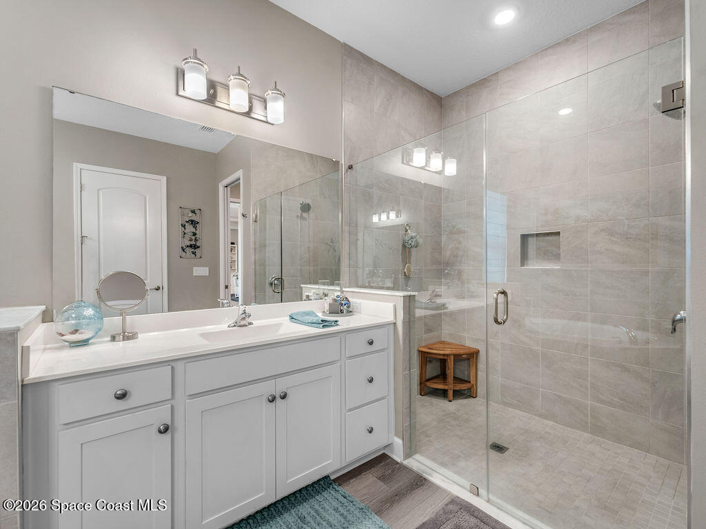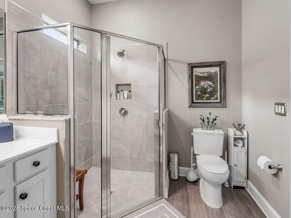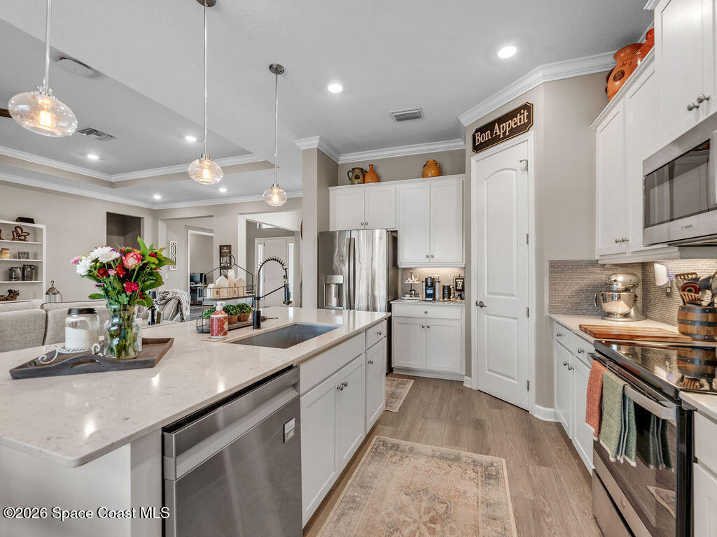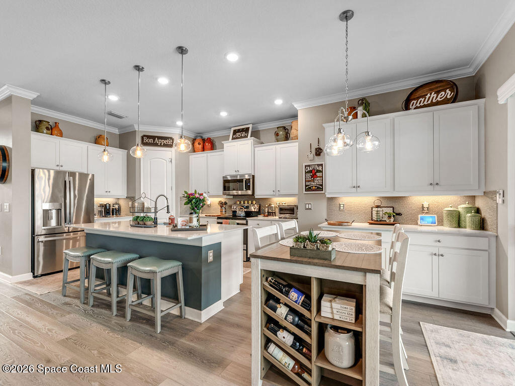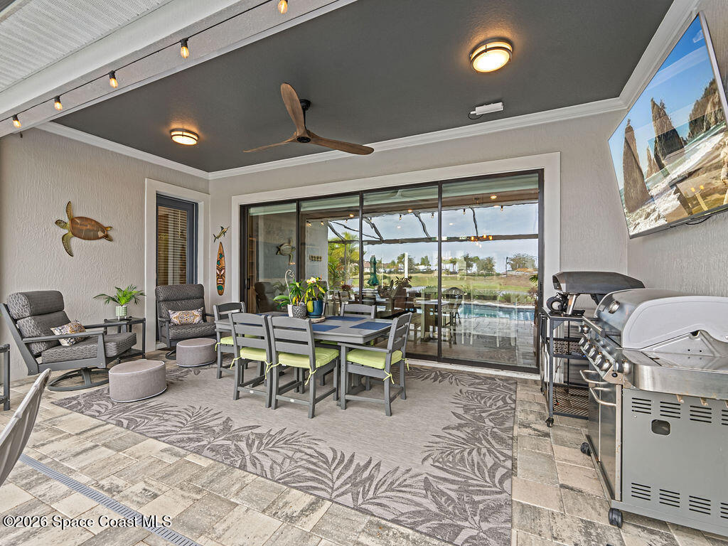 Welcome home to relaxed waterfront living in this stunning 4-bedroom retreat nestled within a premier 55+ Central Viera community. Sun-filled open spaces and three full baths create an easy, comfortable flow, while the private heated pool and spa invite quiet mornings and sunset evenings by the water. Move-in ready with extras already in place - accordion storm shutters, paid-off solar panels, a whole home water filtration, a 3-car split garage, with widened driveways to improve vehicle accessibility and passenger comfort. Resort-style amenities, friendly neighbors, and a vibrant social calendar make every day feel connected, carefree, and truly home.