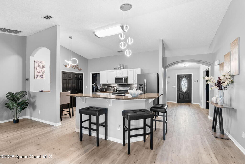Welcome to 765 Triple Crown Ln, Melbourne, FL 32904--a beautifully maintained, move-in ready home in West Melbourne. This open floor plan is filled with natural light, high ceilings, and modern finishes throughout. The kitchen features ample cabinetry, generous counters, and modern appliances, flowing seamlessly into the living and dining areas. The primary suite offers a walk-in closet and private en-suite bathroom, while additional bedrooms provide flexible space. Step outside to your private screened-in pool, perfect for relaxing or entertaining in Florida's sunshine. Located near shopping, dining, schools, major highways, and just minutes from beaches and parks, this home combines style, comfort, and convenience. Don't miss the opportunity to make this stunning pool home yours!