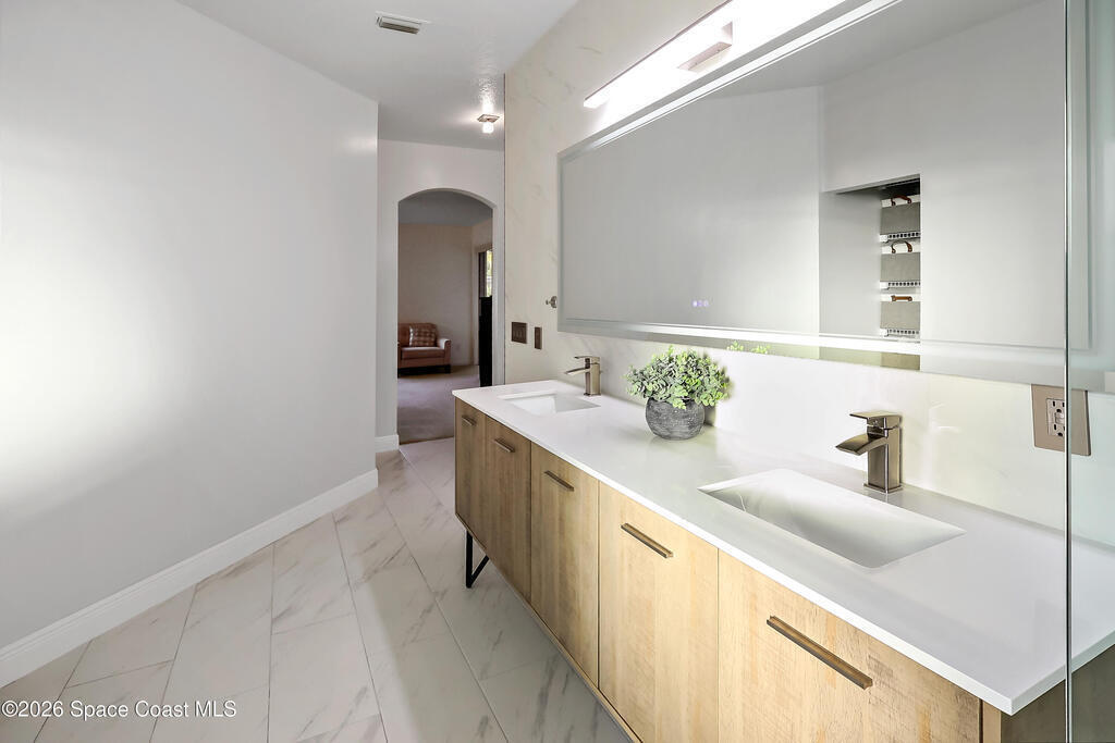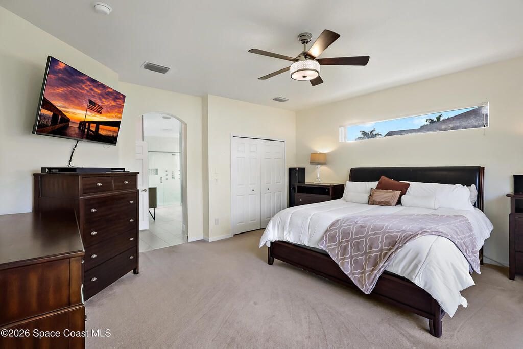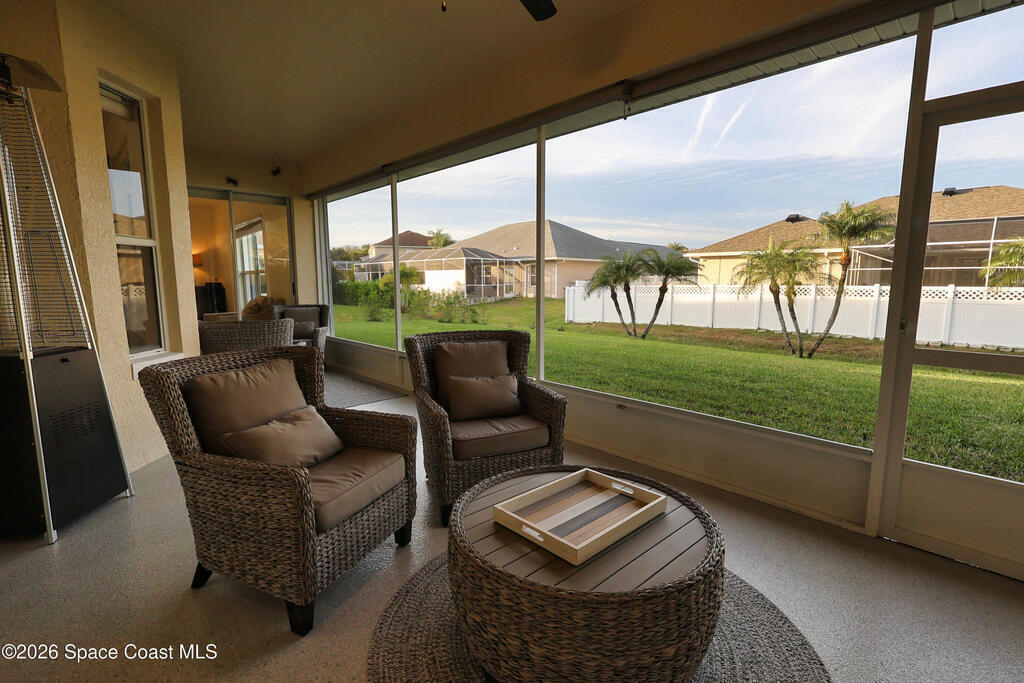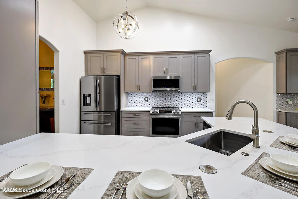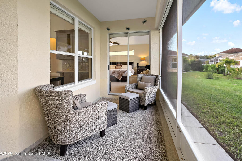 Tucked on a quiet cul-de-sac in the gated Oak Chase community in Vero Beach, this bright, modern home shines with an open floor plan, soaring ceilings, and abundant natural light. The beautifully updated kitchen--featuring quartz counters, soft-close cabinetry, and stainless-steel appliances--will inspire any home chef. Double split 4BR/3BA layout offers space and privacy. Unwind in the spacious primary suite with walk-out to lanai, walk-in closet, and spa-style wet room with tandem panel showers. Enjoy year-round entertaining on the screened lanai. Extras include a 2-car garage with epoxy floors and screen door, whole-home water purification, accordion shutters, and pre-wired for security system and portable generator. Centrally located!