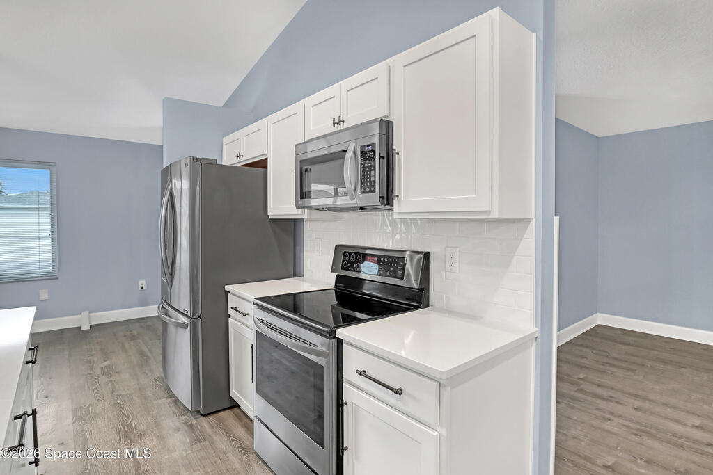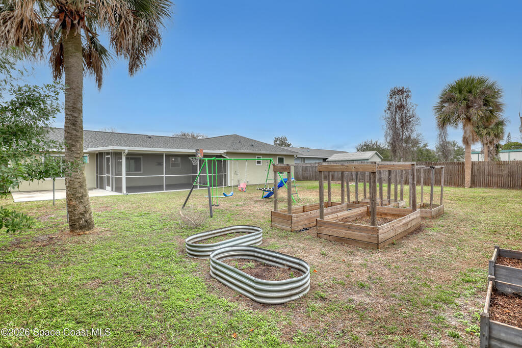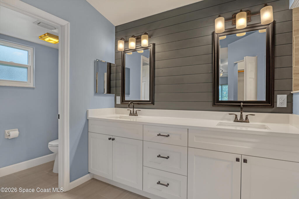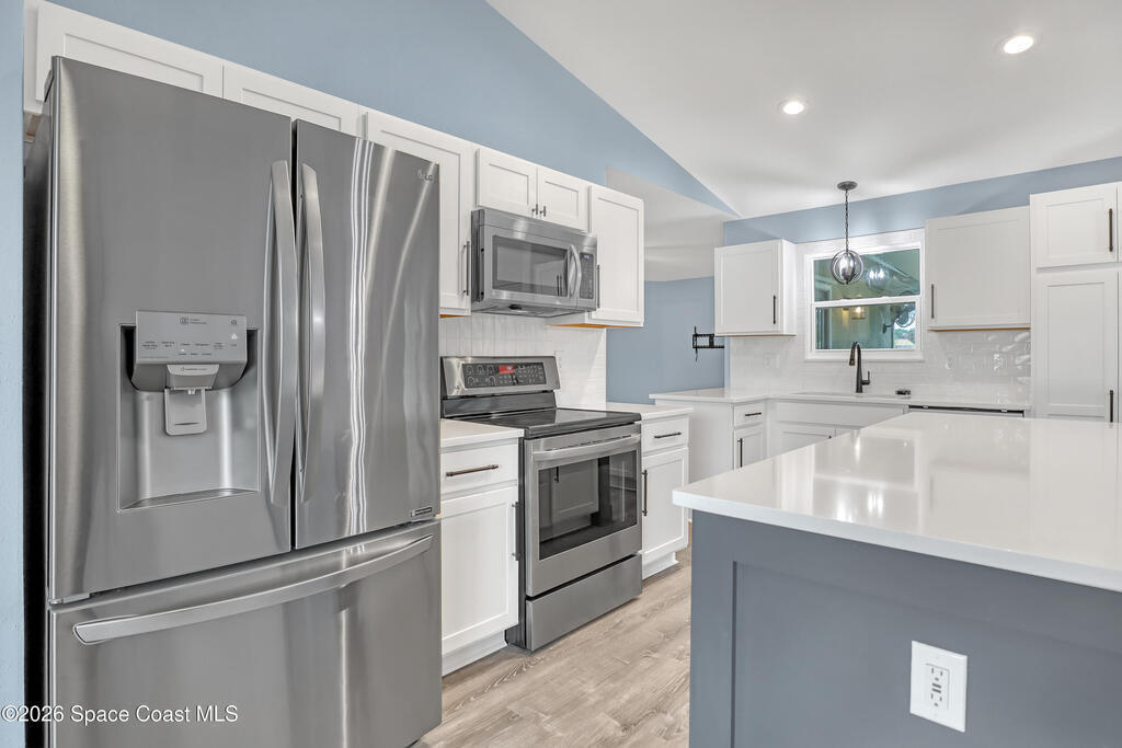 This tastefully renovated gem is an absolute must see, just like new, except with the charm already included! Featuring a split floor plan with vaulted ceilings and two separate living areas, a gorgeous kitchen with a large center island & quartz counter tops, open to both family & dining room areas, a spacious master suite with his & hers walk-in closets, quarts tops & double sinks. A second family room is centered around secondary bedrooms (with walk-in closets), common bathroom & laundry room, with Anderson sliders leading to an impressive screened porch, with plenty of room for a hot tub inside or out, on the extended slab. The huge fenced back yard offers privacy and plenty of room for a pool. 2023 Roof, 2023 AC, 2023 Screened porch, 2023 Driveway Extension & Back Patio Slab, 2021 Impact Windows & Door, 2021 Garage Door. Conveniently located close to schools, shopping, resturants & services on both Malabar Rd & Palm Bay Rd. A quick drive to the Indian River and the local beaches
