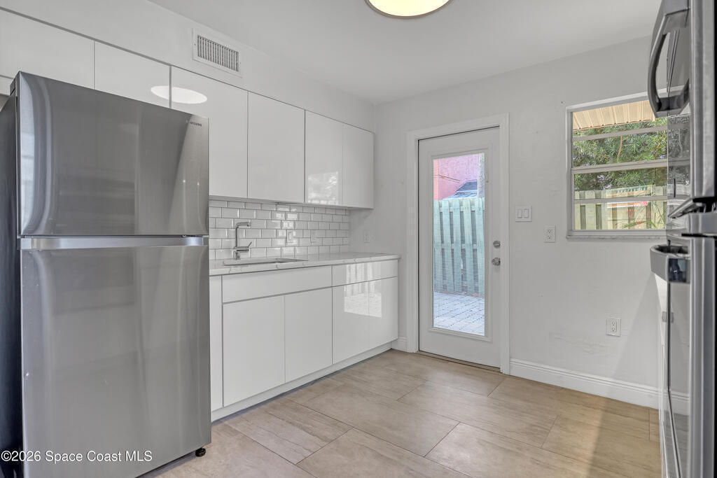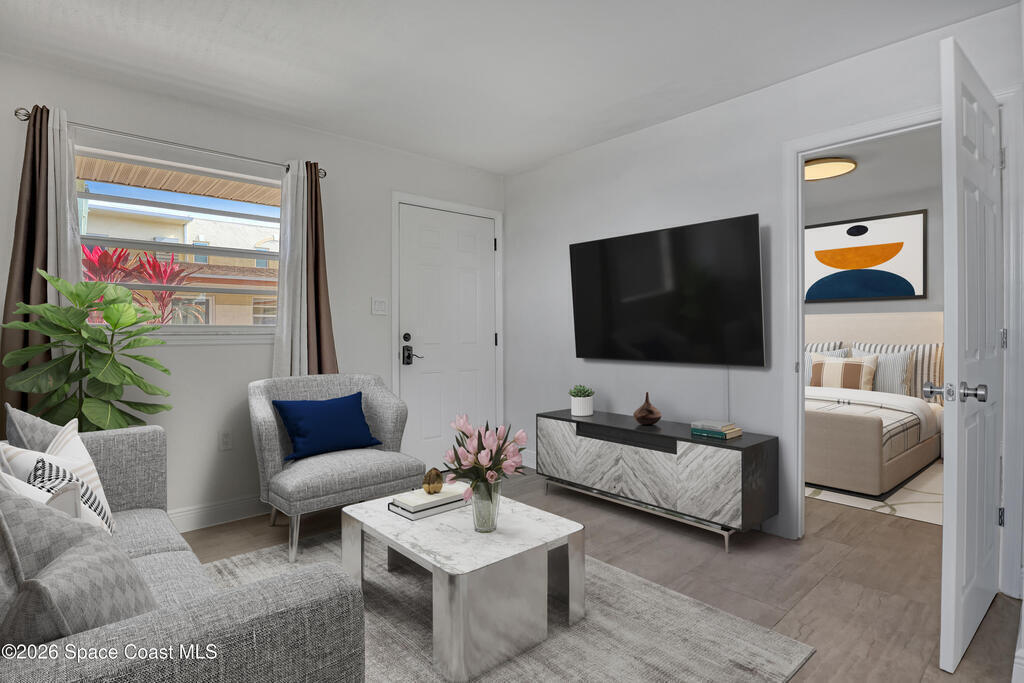 Welcome to paradise at this stunningly remodeled end-unit in the heart of Cape Canaveral! This beautifully updated 1-bed 1-bath gem offers the perfect blend of coastal charm, and unbeatable location ideal as a primary residence, vacation getaway, lucrative investment, or a beachside rental. Step inside to a bright open floor plan with fresh, contemporary finishes throughout that create a welcoming retreat after a day at the beach or watching a rocket soar overhead. The spacious private back patio with pavers provides an outdoor oasis perfect for morning coffee, evening drinks, or al fresco dining while enjoying the Ocean breeze. Extra storage space adds convenience for beach gear, bikes, or seasonal items, and you'll love the two parking spots right out your door. Location is everything, just two blocks to the beach crosswalk, 5 minutes from the cruise ships of Port Canaveral, 40 minutes to OIA & theme parks, walk to dining and shopping. A smart investment in the booming Space Coast!