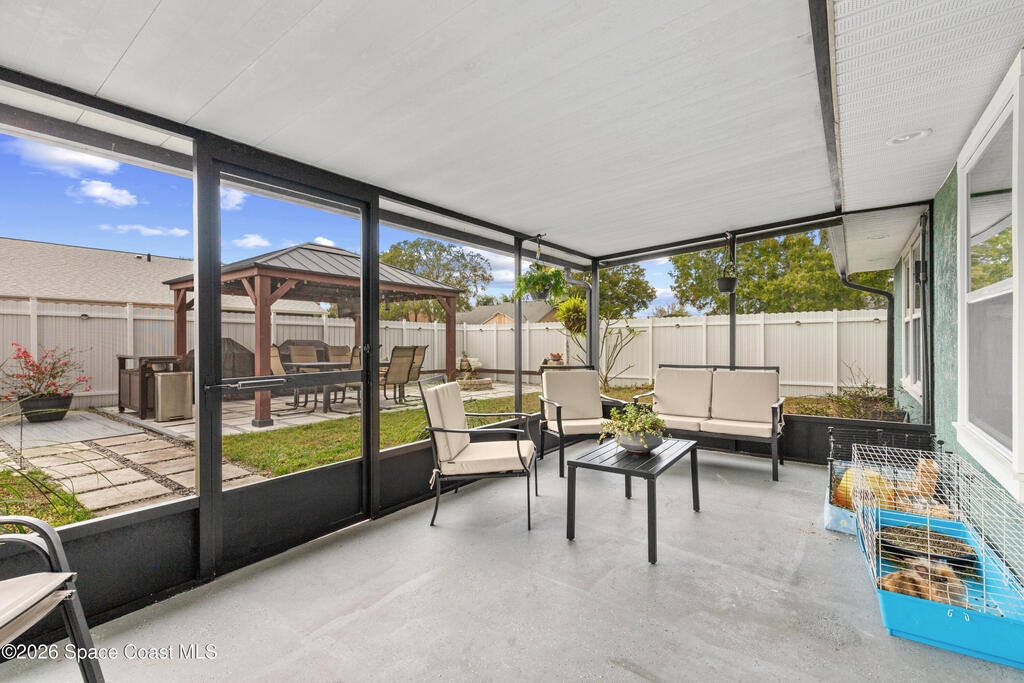 Beautifully maintained 3-bedroom, 2-bath home featuring a private backyard oasis. This split-bedroom, open floor plan offers an updated kitchen with quartz countertops and stainless steel appliances. Centrally located in Melbourne, just minutes from shopping, dining, and major conveniences. Recent upgrades include a new roof with full home solar panels (no PACE loan), HVAC system, and new fencing in 2024. Outdoor highlights include a large gazebo with fire pit (2022) and an above-ground pool (2020).