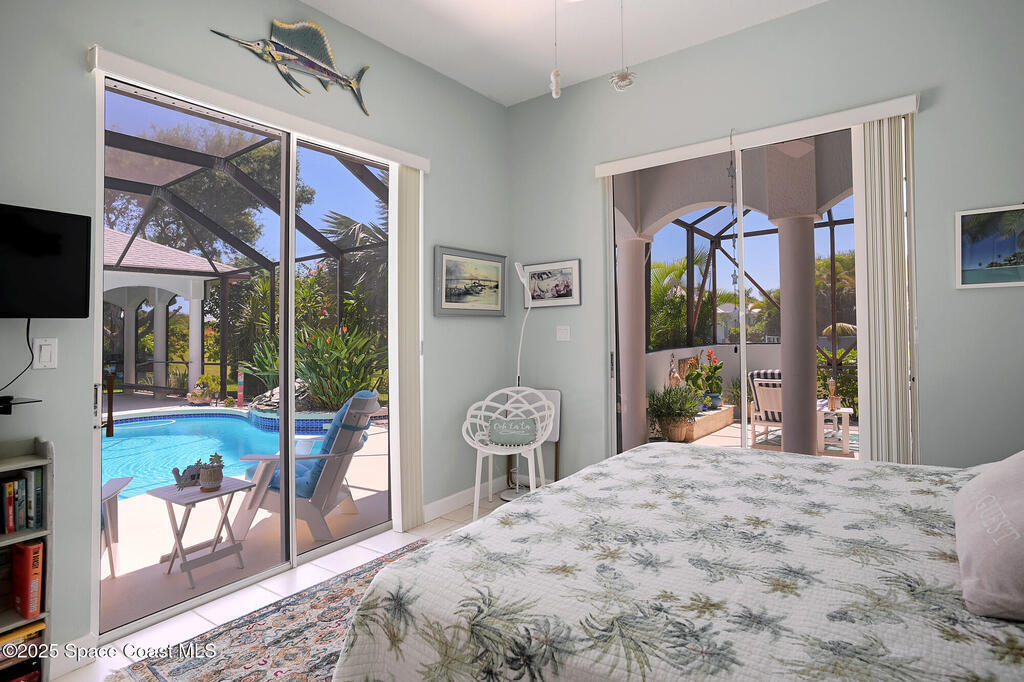 Stunning, remodeled home in Wingate Reserve has so much to offer! Walk to deeded beach or river access in 5 minutes! New roof in 2018 has transferable warranty. New gutters in 2023. New hurricane impact windows installed in 2024. Home completely re piped so no copper pipe remains. Resort style, newly resurfaced pool has waterfall and new tile plus cool tiki bar (2023) and large covered lanai area perfect for entertaining. Enjoy pretty view of the lake and lush landscape. The kitchen has white cabinets with some glass inserts, new dishwasher and ample granite countertops. Super layout with spacious guest suite with full bath right off of the pool. It has a private entrance and is perfect for office, gym or guests. New blinds installed and pool pump 2024. The ocean access has a gate and stairs to the sand while the river access has nice walking trail and kayak launching dock. Underground power lines and sidewalks for strolling. It doesn't get any better than this!