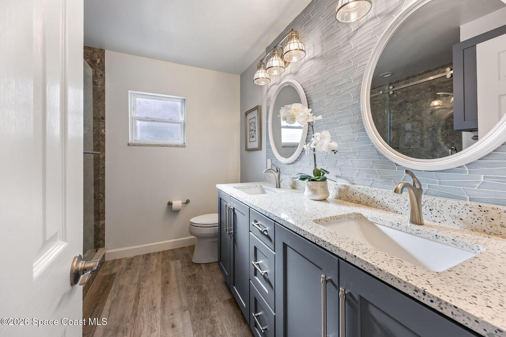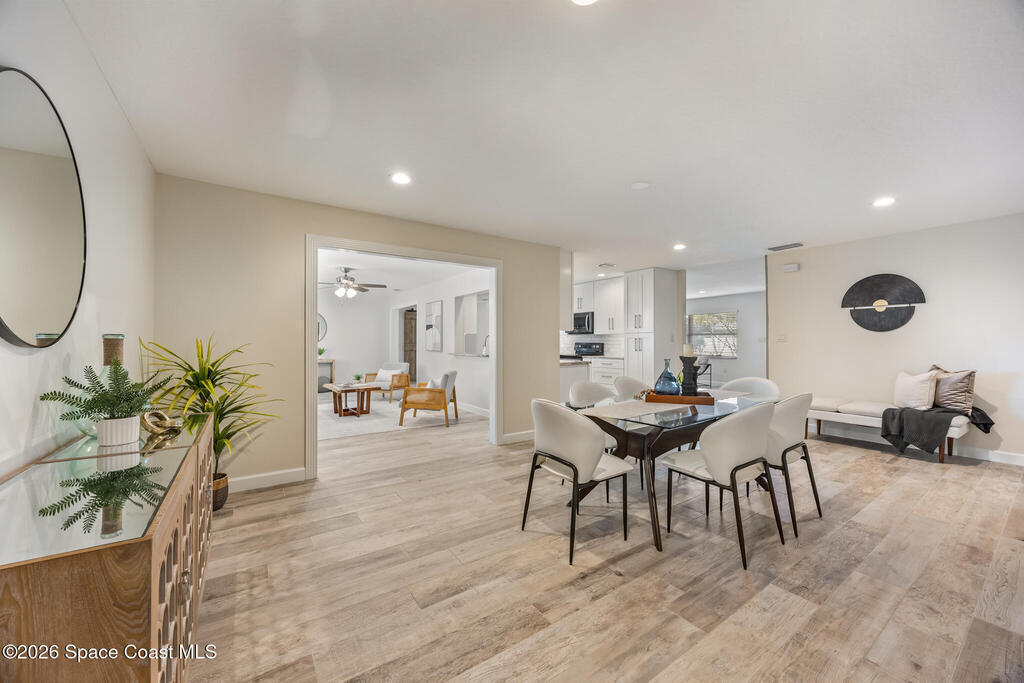 JJust two blocks from the ocean, this fully renovated 5-bedroom, 2-bath pool home offers over 2,500 sq. ft. of bright, coastal-inspired living in the heart of Satellite Beach. Renovated between 2017-2020, the home features a 2017 roof, wood-look tile throughout the main living areas, and soft carpet in select bedrooms. The open-concept, split-bedroom floor plan is ideal for both everyday living and entertaining. Step outside to your private backyard oasis, perfect for swimming, relaxing, or watching rocket launches light up the sky. Hurricane shutters provide peace of mind, and a washer and dryer are included for added convenience. Just a short stroll to the beach, library, dog park, skate park, and more, this home offers space, style, and an unbeatable beachside location.