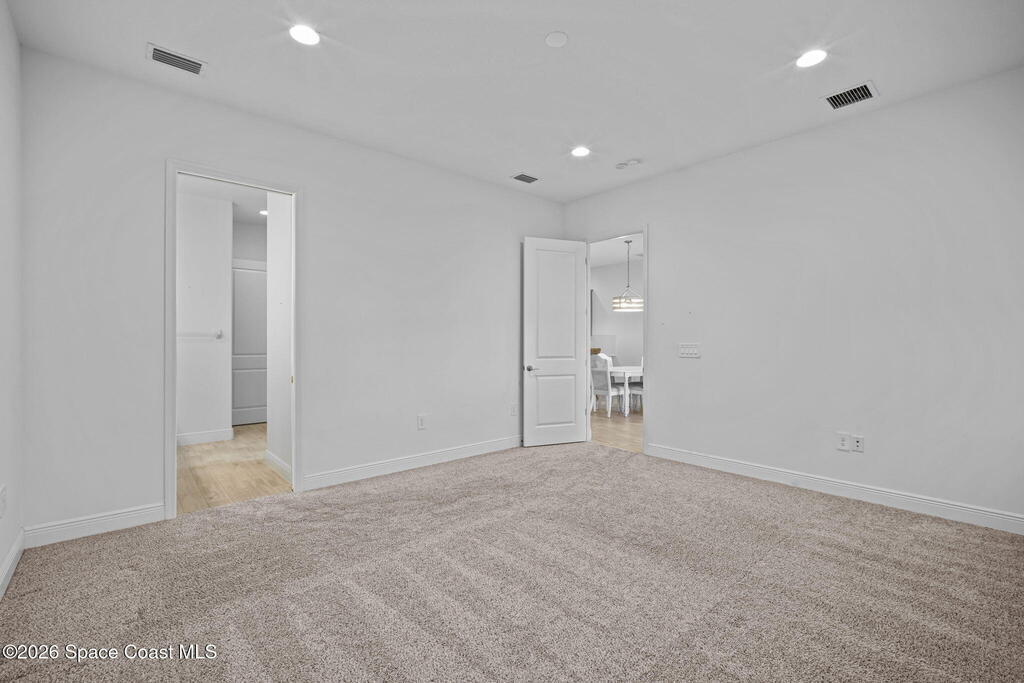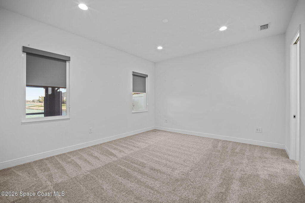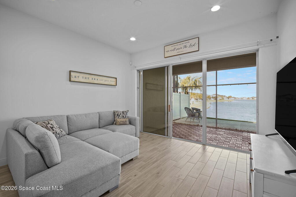 Welcome to your dream home in Avalonia, located in the heart of Viera, Florida, with a golf cart included. This upgraded 3-bedroom, 2-bath interior townhome offers just over 1,400 square feet of comfortable living with over $30,000 in upgrades and a $20,000 premium water lot.Inside, you'll find custom blinds, California closets, and wood-look tile throughout the main living areas. The kitchen features stainless steel appliances including a gas stove, tile backsplash, breakfast bar, and 42-inch cabinets. The family room opens to peaceful water views through a double sliding glass door.The primary bath includes a large walk-in shower and double sinks. Enjoy the covered back porch with custom wood decking and a picture screen. The HOA covers roof replacement, lawn care, exterior paint, termite and pest control, basic cable, and internet for low-maintenance living.