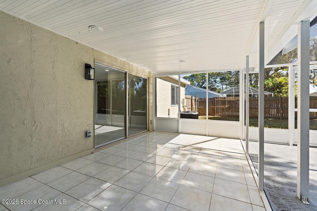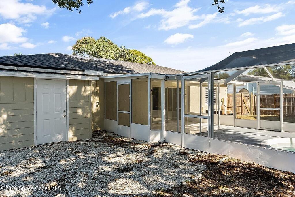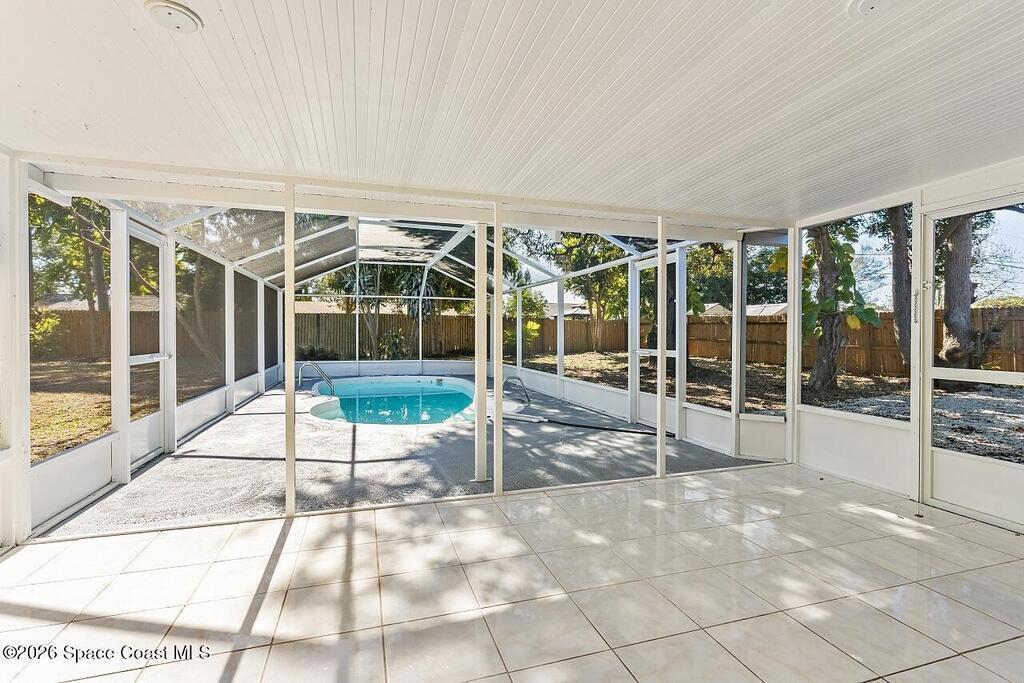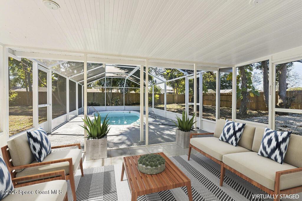 This beautiful pool home is all buttoned up & ready for you! As you enter you'll notice the oversized tile flooring, fresh paint, new ceiling fans & lighting. Next, your eyes will notice the gorgeous kitchen w/ exotic granite, white shaker cabinetry & SS appliances, including a vent hood. Off the dining area you'll find the covered & screened patio w/ tile flooring overlooking the screened private pool in the fully fenced backyard. Both bedrooms have fresh laminate flooring and new baseboards and the shared bathroom is complete with a tub/shower combo. 2024 Roof, 2021 Water Heater, 2019 AC.