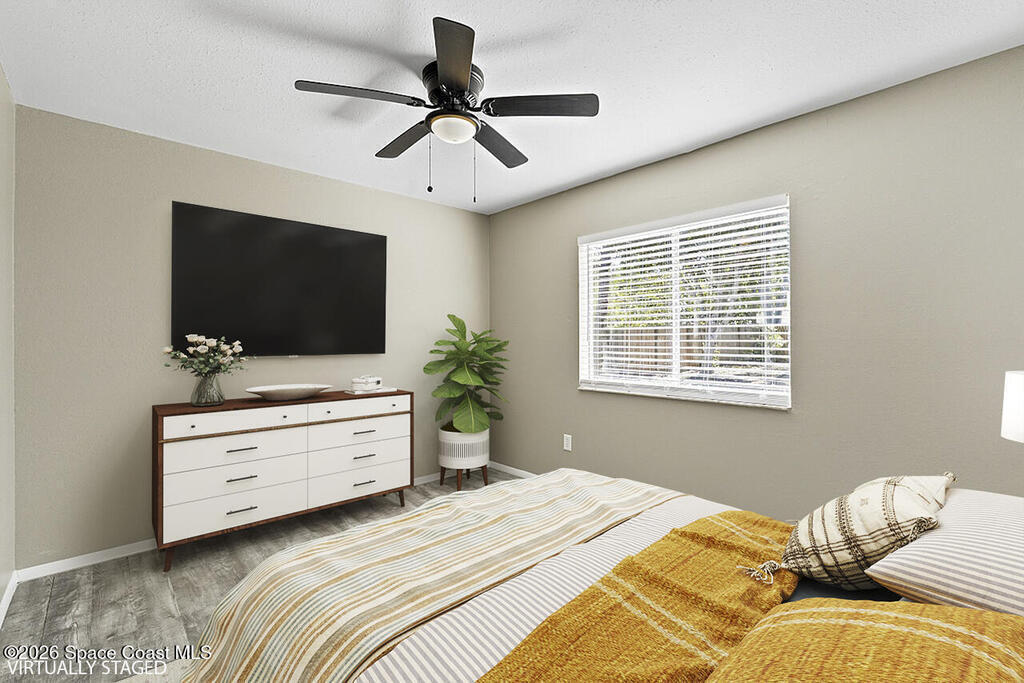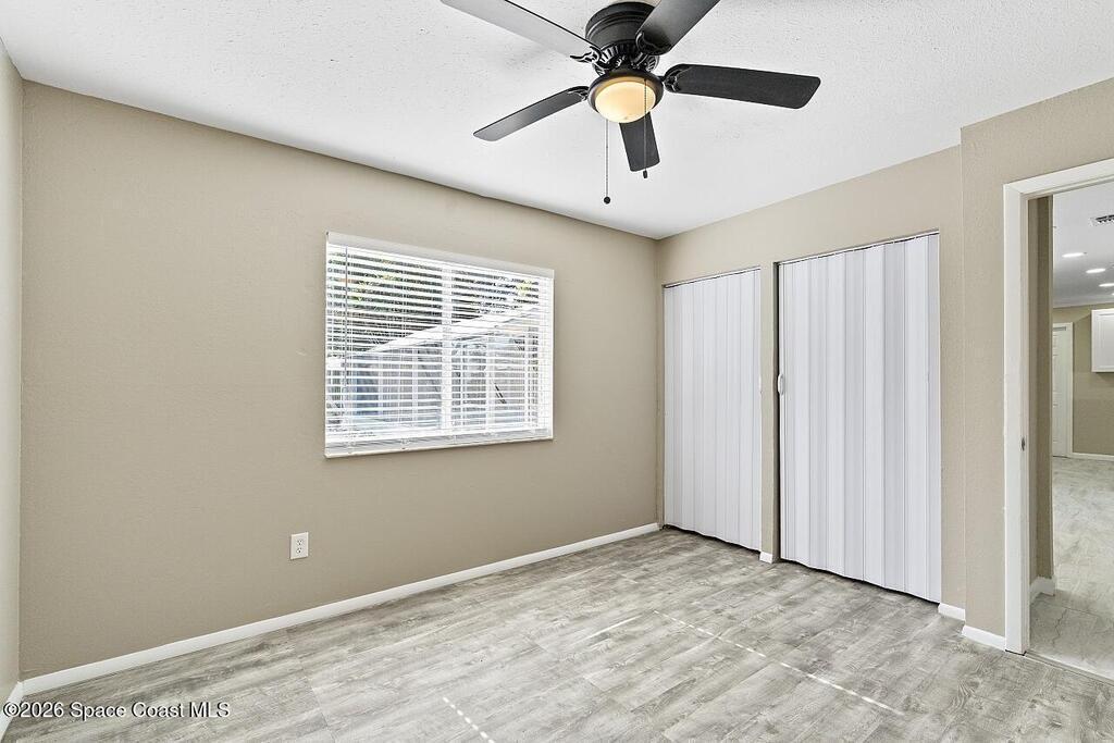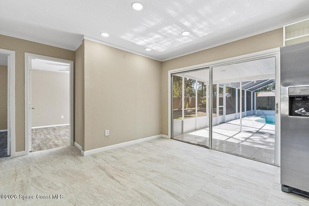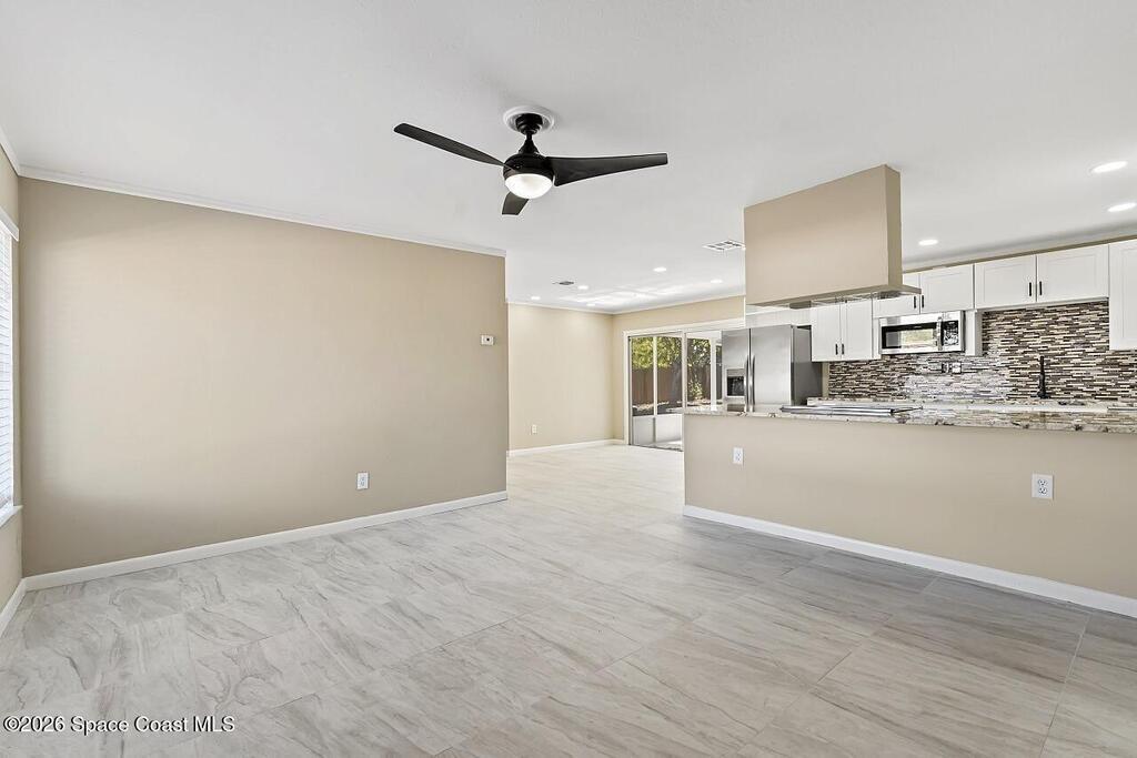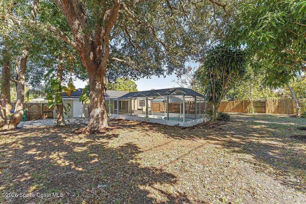 This beautiful pool home is all buttoned up & ready for you! As you enter you'll notice the oversized tile flooring, fresh paint, new ceiling fans & lighting. Next, your eyes will notice the gorgeous kitchen w/ exotic granite, white shaker cabinetry & SS appliances, including a vent hood. Off the dining area you'll find the covered & screened patio w/ tile flooring overlooking the screened private pool in the fully fenced backyard. Both bedrooms have fresh laminate flooring and new baseboards and the shared bathroom is complete with a tub/shower combo. 2024 Roof, 2021 Water Heater, 2019 AC.