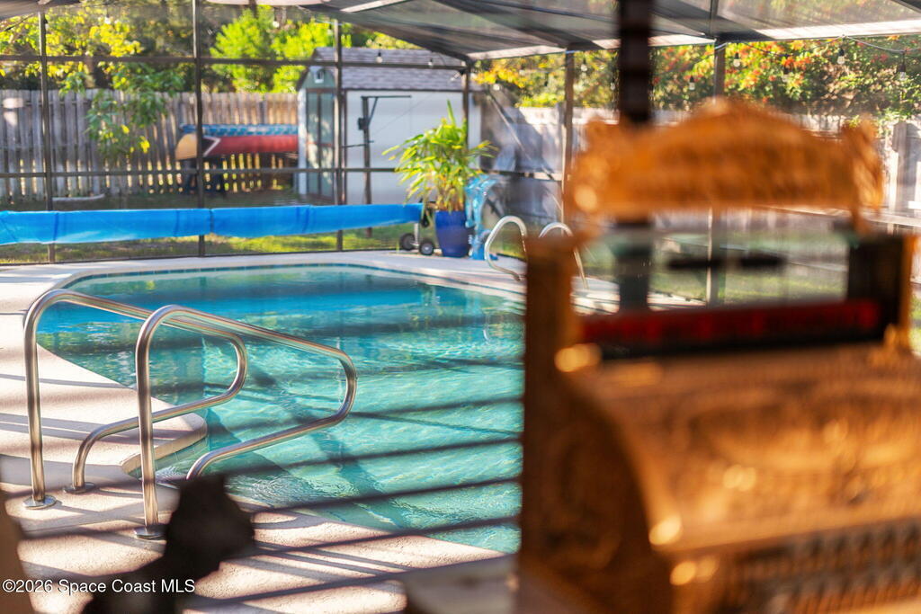 Welcome to 44 Berkley Square, a lovingly maintained 3-bedroom, 2-bath home tucked away on a quiet cul-de-sac just blocks from the Indian River. This inviting property offers the perfect blend of comfort, privacy, and Florida outdoor living.Step inside to find a formal living room with a cozy wood-burning fireplace, ideal for relaxing evenings, while the expansive family room provides plenty of space for entertaining friends and family. The home has been freshly painted, creating a clean, move-in-ready feel throughout.Out back, enjoy your own private oasis -- a screened-in pool overlooking a peaceful nature preserve, offering serene views and exceptional privacy. With no HOA, you'll also appreciate the flexibility of a 2-car garage plus side parking for a boat or RV, perfect for those who love the Florida lifestyle.Additional highlights include a roof replaced in 2020, fully paid solar panels, and a large interior laundry room with extra refrigerator for added convenience.
