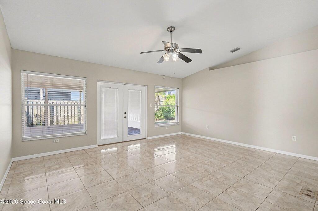 Spacious 4 bedroom, 2 bath home featuring a desirable split floor plan in the Sunrise subdivision. The oversized eat in kitchen overlooks the family room creating an ideal space for everyday living and entertaining. A formal dining room and versatile flex space offers endless possibilities and can be used as a fifth bedroom, home office or formal living room. Enjoy outdoor living on the 30x15 screened, covered patio overlooking a fully fenced backyard. The primary suite includes a beautifully renovated master bath. Conveniently located near I95 with easy access to beaches, Patrick Space Force Base, cruise ports, shopping, hospitals, everything Viera and more.