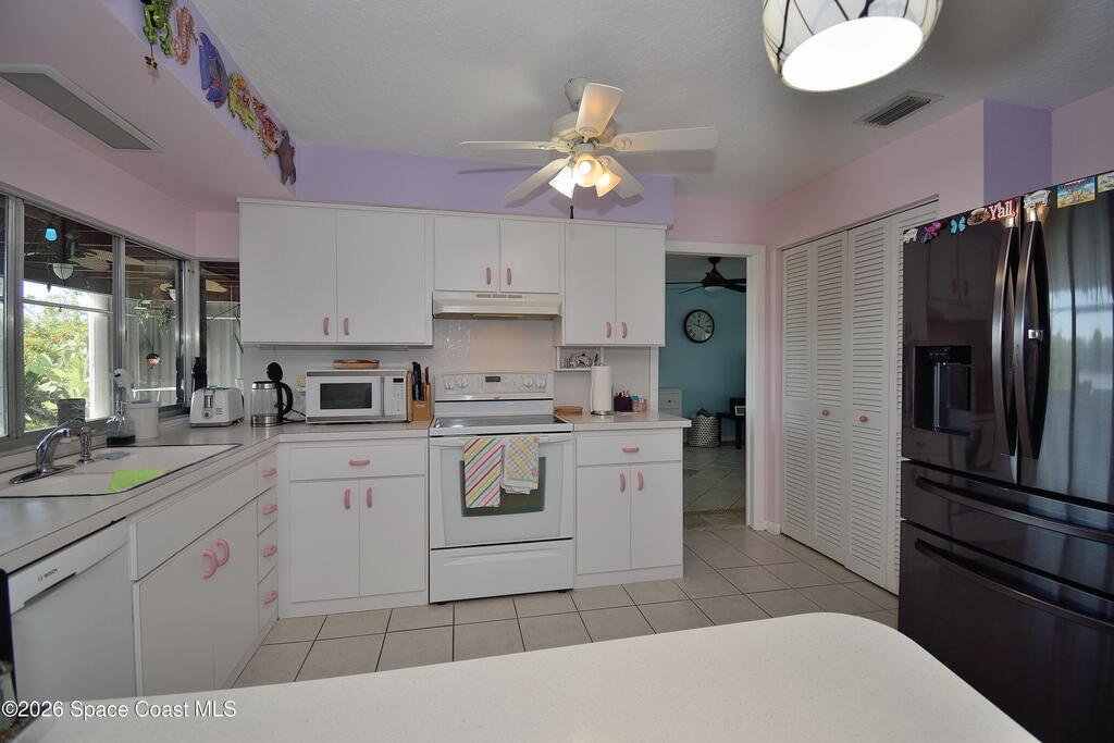Canalfront living just blocks from the beach. This 4 bedroom, 2 bath concrete block home offers direct access to the Banana River on an extra wide canal and is perfectly positioned for coastal living or investment use. With approximately 1,900 square feet, a 2-car garage, and southern exposure, the screened back patio stays bright and breezy year-round.Inside, three sets of sliders lead to the patio, including two pocket-style sliders that fully open the living space to the outdoors. The guest bathroom provides convenient access to the patio, and the backyard has plenty of room to add a pool. A tiki hut on the patio sets the tone for relaxed waterfront entertaining.Major upgrades include a metal roof, solar panels, hurricane shutters, and select impact windows. No cast iron plumbing. That's a big one. The home is concrete block construction and well-suited for peace of mind and long-term ownership.Located just a few blocks from the Cocoa Beach Pier