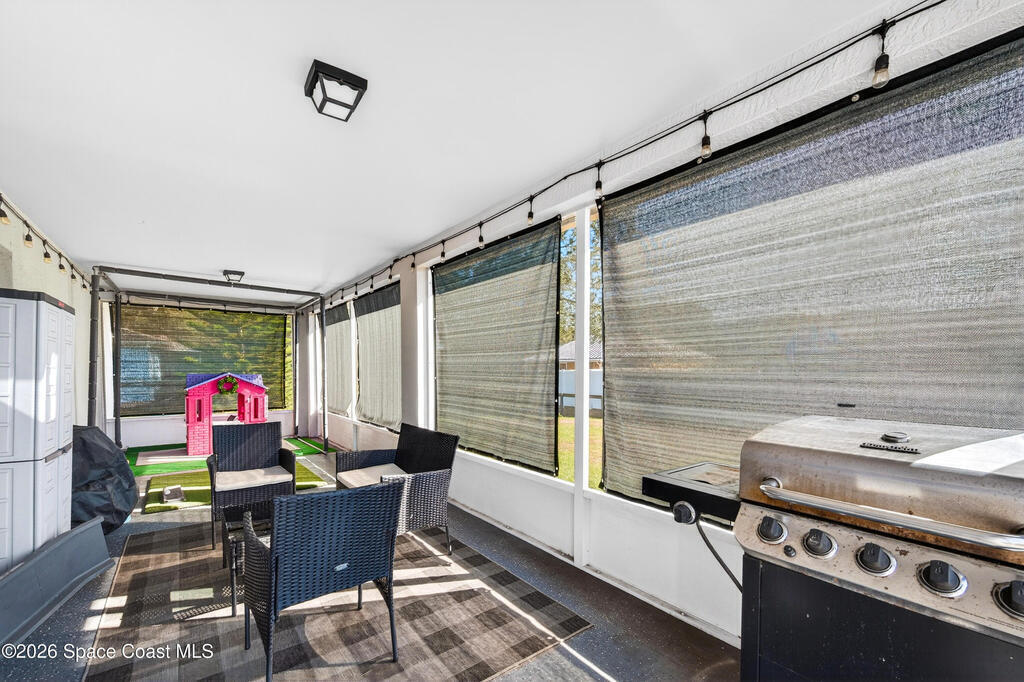 You will LOVE this 3 Bedroom, 2 Bath home in popular Trail's End Subdivision! Move-in Ready! Property has a fully fenced back and side yards. Open concept, with high ceilings, give the home a large welcoming feel. Huge screened porch provides great outdoor space! Property has Storm Shutters and New METAL ROOF installed in 2021, HVAC inside and out 2021, Gutters with French Drains from Downspouts! Home even has Govee exterior soffit lighting! Convenient to I-95, 528 and US1. Short trip to Orlando Theme Parks, Beaches and Port Canaveral!