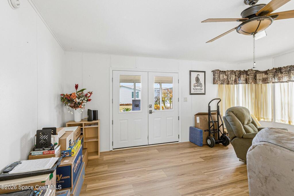 Choose affordable living in this senior community where you own the land !Hoa is low and includes cable,internet,lawncare and security.free boat or RV parking too!Inside you will find a spacious 2bedroom 2 bath with an open floor plan for easy entertaining and maintenance. Conveniently located near I95 and 528,close to beaches,shopping and Nasa. A littleTLC will make this home perfect for you !