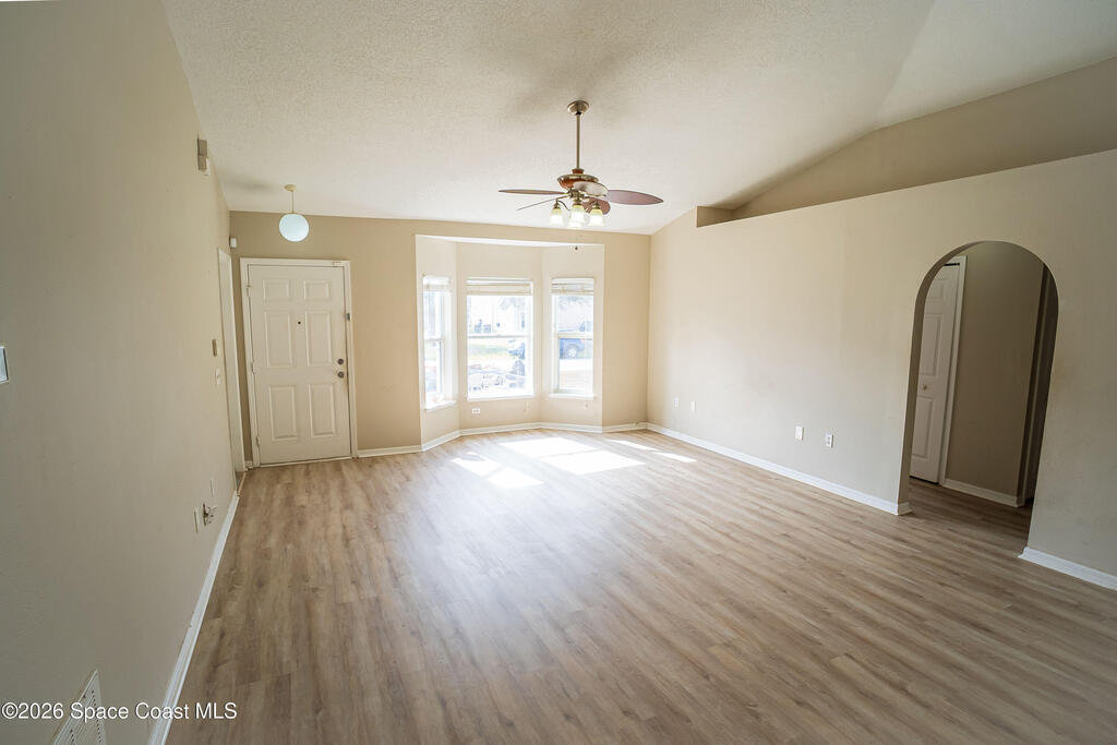 Welcome to your Palm Bay retreat! Ideally located near top-rated schools, shopping, and the beautiful Space Coast beaches, this charming home offers comfort, style, and convenience. Featuring 3 spacious bedrooms, 2 full bathrooms, a 2-car garage, and a screened patio, it's nestled in a highly desirable residential neighborhood. Inside, enjoy luxury vinyl plank flooring throughout the main living areas and primary suite, complemented by a bright, open-concept layout with soaring vaulted ceilings in main living spaces. The kitchen is well-appointed with oak cabinetry and sleek charcoal appliances, perfect for everyday living and entertaining. Both the primary shower and guest bathtub have been freshly resurfaced, adding a touch of modern freshness. This move-in-ready home is a must-see!