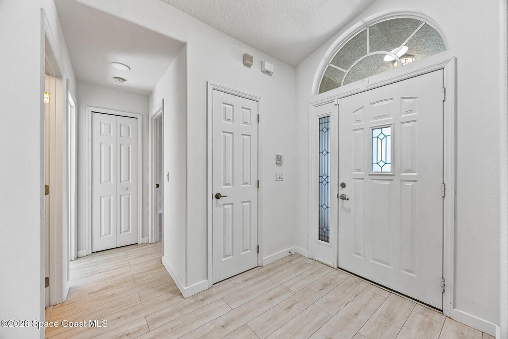 Say hello to this beautiful Merritt Island home! Step inside to discover soaring vaulted ceilings and an open, airy layout beaming with natural light. Tastefully upgraded flooring flows seamlessly throughout, complimented by modern fixtures and finishes that give this home a clean, contemporary feel.Just off the main living area, enjoy a climate-controlled Florida room that offers additional living space for endless indoor-outdoor enjoyment. Outside you'll find a full privacy fence and paver patio, ideal for relaxing or entertaining. The spacious primary suite is a true retreat, offering a garden tub, separate shower, double sinks, and a huge walk-in closet. Generously sized secondary bedrooms make this home as practical as it is inviting!