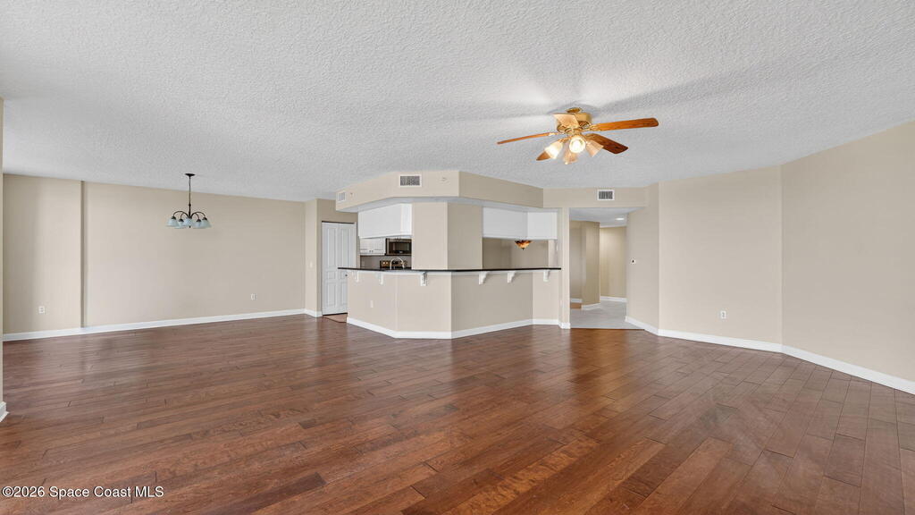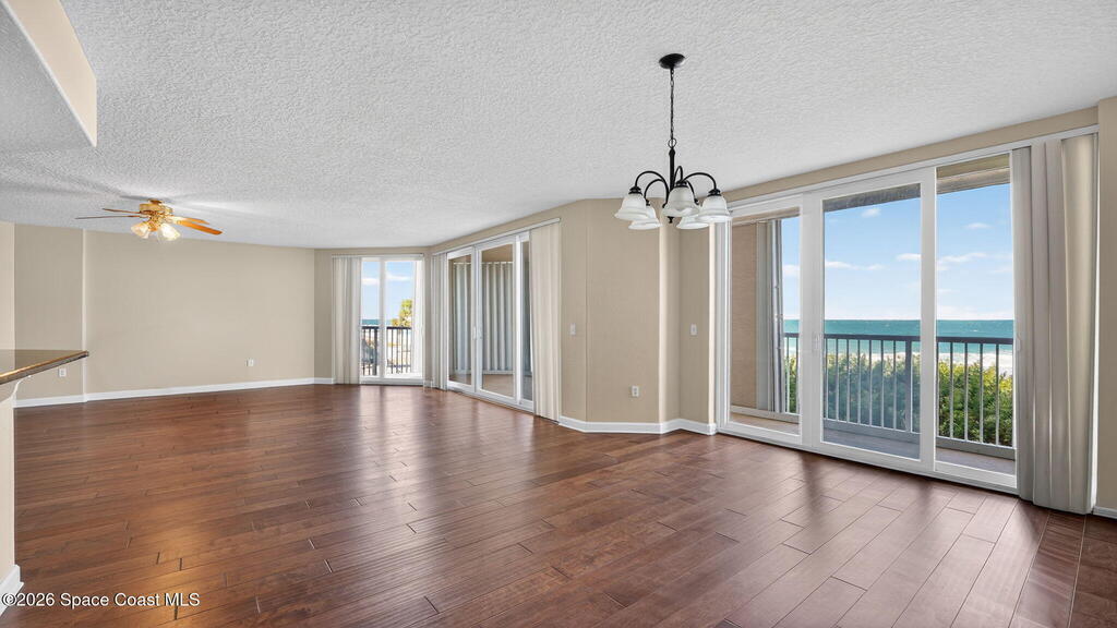 Imagine owning an oceanfront condo where the beach is just steps away and the view is part of daily life. This three‑bedroom plus den (or 4th bedroom), three‑bath residence offers direct ocean views from the living room, perfect for watching waves or sunrise. The kitchen and main walkways feature 18-inch tile for a clean, low‑maintenance feel, while the dining room, living room, and primary bedroom include wood‑look tile for warmth and a modern, cohesive look. The primary bedroom provides comfort, privacy, and easy access to the main living areas. With a flexible layout and well‑designed bathrooms, the space works beautifully for family or guests. Step outside to the sand or relax indoors with the ocean as your backdrop--this condo blends location, practicality, and coastal living effortlessly.