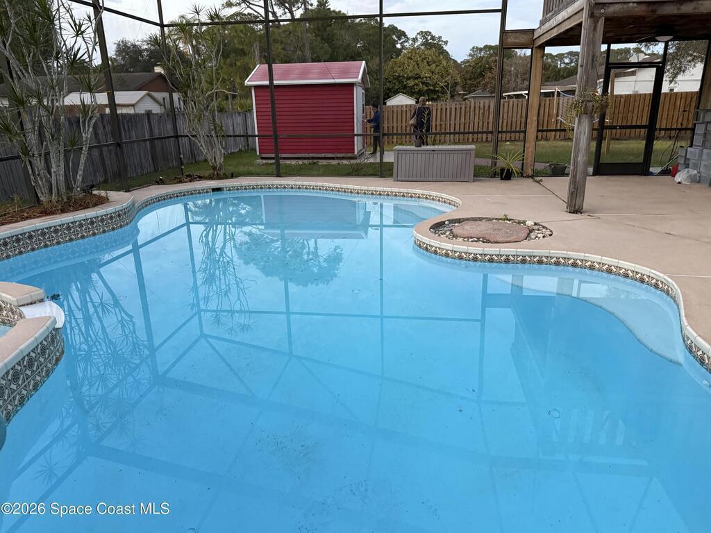 Welcome to Lockmar Estates -- one of Palm Bay's most desirable communities, offering the neighborhood feel everyone loves without the HOA fees or restrictions.Set on nearly half an acre, this property delivers the Florida lifestyle so many dream of, complete with a private pool and spacious, fenced backyard--perfect for entertaining, relaxing, or simply enjoying the sunshine.Inside, you'll find vaulted ceilings, abundant natural light, and a cozy fireplace that creates a warm and inviting atmosphere. The upstairs primary suite features a private deck overlooking the pool, offering the ideal retreat after a long day. The updated bathrooms and Kitchen stylish finishes throughout add a modern touch.Step outside to discover a powered backyard retreat, perfect as an office, creative studio, or personal getaway. And with a newer roof, A/C, 2020 water heater 2025, you can rest easy knowing the big-ticket items are already taken care of.