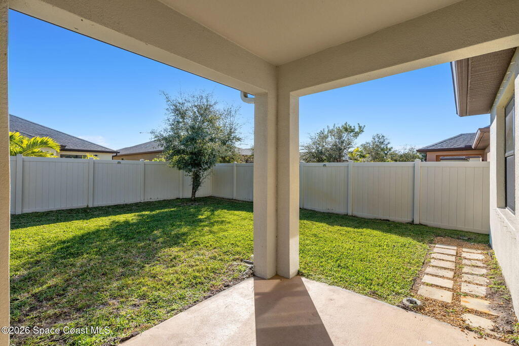 Newly built in 2021 and move-in ready, this well-maintained 4BR/2BA home offers 1,908 living SF of open-concept living. The kitchen features upgraded granite countertops, a spacious island w/ breakfast bar seating, SS appliances, upgraded faucets and refrigerator, classic subway tile backsplash, and a walk-in pantry- many of the upgrades set this home apart from the others. The primary suite includes a walk-in closet and en-suite bath w/ dual sinks, granite countertops, and a walk-in shower. Three additional bedrooms provide flexibility for guests, a home office, or hobbies, and a dedicated laundry room adds convenience. An Apple smart home system controls lighting, door locks, thermostat, security, and more. Outside, enjoy the vinyl-fenced backyard with upgraded St. Augustine grass, ideal for pets, play, and entertaining. Located in the family/pet-friendly Southhampton Lakes community w/ a dog park. Close to shopping, dining, major employers, including L3 Harris, I-95, and much more!