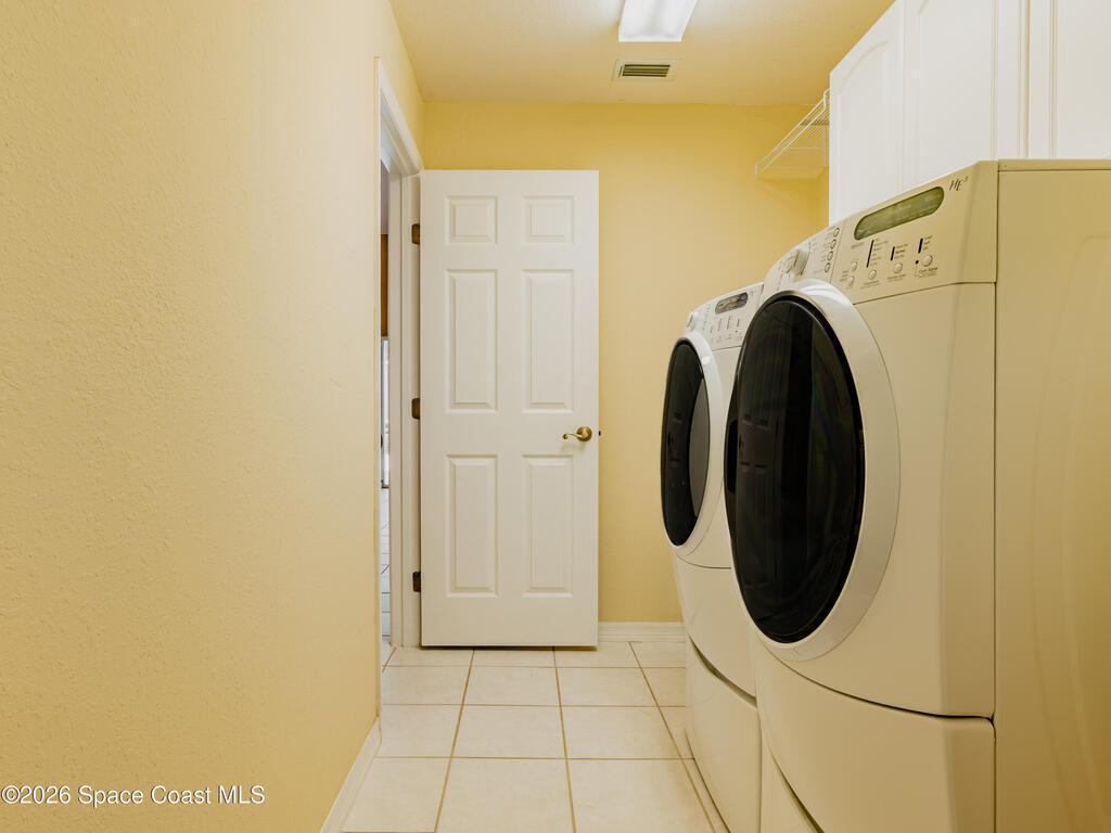 Enjoy Space Coast living in this 4-bed, 2-bath, 2,152 sq ft split-floorplan pool home with 3-car garage conveniently located near shopping, dining, entertainment, and Florida's beautiful beaches. Upon entry, you are greeted by a dining area to the right and a versatile living/entertaining space to the left, both featuring built-in bookcases, perfect for book collectors, or displaying cherished items. Moving through the home, the fourth bedroom provides flexible use as an office, nursery, or bonus space and connects through double doors to the primary suite. The primary retreat features a soaking tub, walk-in closet, and a separate shower and toilet area. The centrally located kitchen opens to a spacious family room, creating an inviting open-concept living area that flows seamlessly through triple sliding doors to the screened-in pool and spa and private backyard, ideal for entertaining. Rest easy with a whole house generator and hurricane shutters.