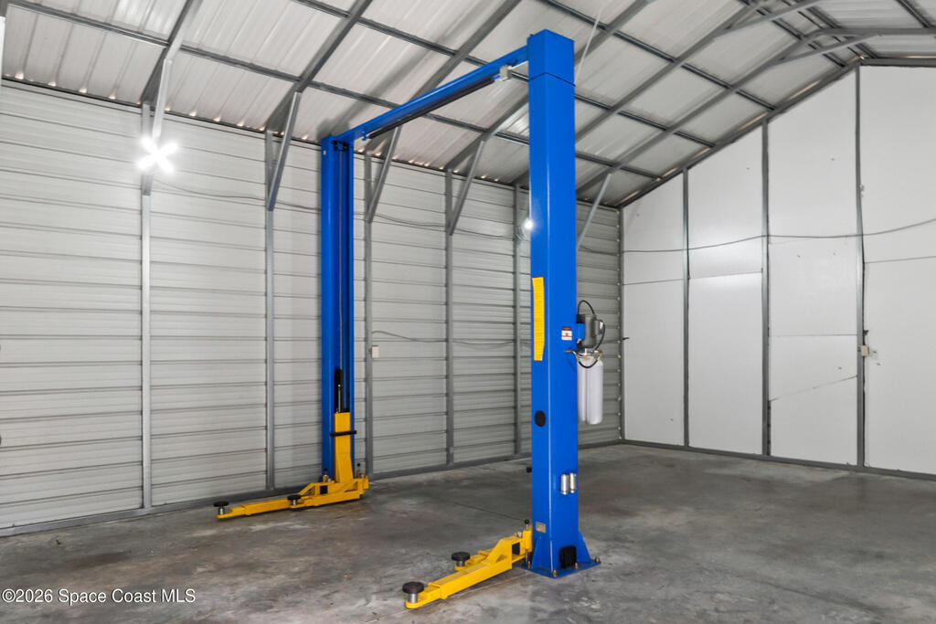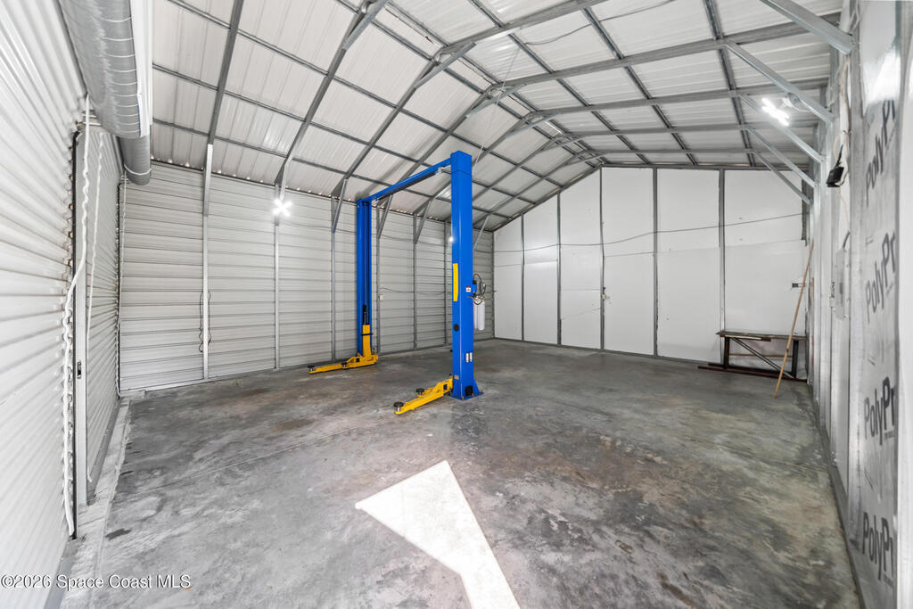 Welcome to this 3-bedroom, 2-bath residence where refined craftsmanship meets exceptional functionality with NO HOA!! The home features a 2-car oversized garage along with a separate, fully equipped garage/workshop complete with a car lift & 100 amp sub panel which offers a rare and highly desirable amenity for collectors, hobbyists, or those seeking premium versatility. An extended driveway provides generous parking, while hurricane impact windows deliver both security and peace of mind. Inside, the kitchen is highlighted by custom wood finishes, creating a warm yet upscale aesthetic that blends timeless character with modern appeal. Outdoors, the expansive covered back porch serves as a private retreat, and a 50 amp for hot tub hook-up, ideal for relaxing or entertaining in a serene setting. Perfectly positioned near shopping and dining, this peaceful property offers privacy and convenience without HOA restrictions.