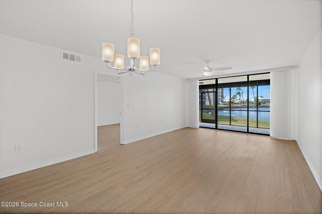 Gorgeous ground floor two bedroom two bath plus den condo in Costa Del Sol has been fully updated with new luxury plank flooring throught, new granite counters, new kitchen cabinets and appliances, large screen porch overlooks pond where you will be visited bby manatees, turtles and birds. Ceiling fans, full size washer and dryer, private one car garage, Community features two pools, clubhouse, tennis, fishing dock. Firm no pets
