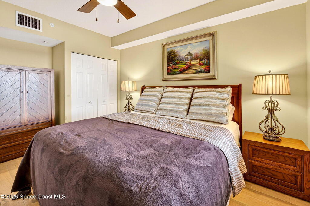 Sought after CORNER DIRECT RIVER unit overlooking the Indian River sunset! Gorgeous updated spacious condo that lives like a home! Enjoy watching the sailboats and wildlife from your own balcony! This gated community provides everything you can desire in the heart of Merritt Island! Gorgeous interior with a wonderful open concept capturing panoramic river views! Eat in island kitchen also boasts a large breakfast bar open to the living and dining area! The primary bedroom has its own balcony plus double walk-in closets, tub and separate shower! Amenities galore include a clubhouse with full kitchen, exercise room, sauna, 2 pools with hot tubs, 3 tennis courts, 1 pickle ball court & 2 basketball courts! There's a lovely boardwalk along the river for your evening strolls! Residents can kayak or paddle board in the Indian River - launching area with stairs on site. This is the lifestyle that you have been looking for! Surrounded by dining and shopping close by! Come see this one today!