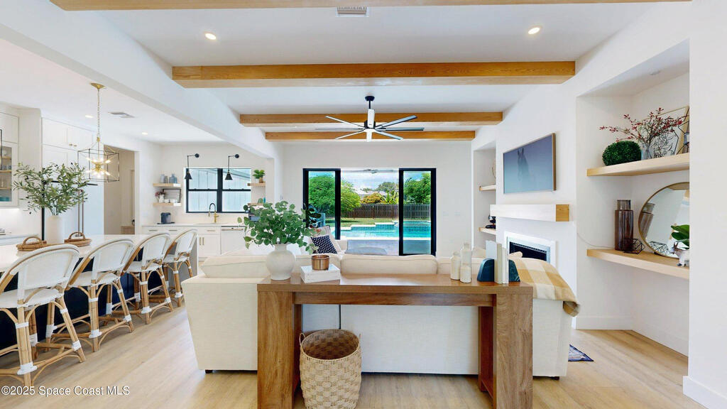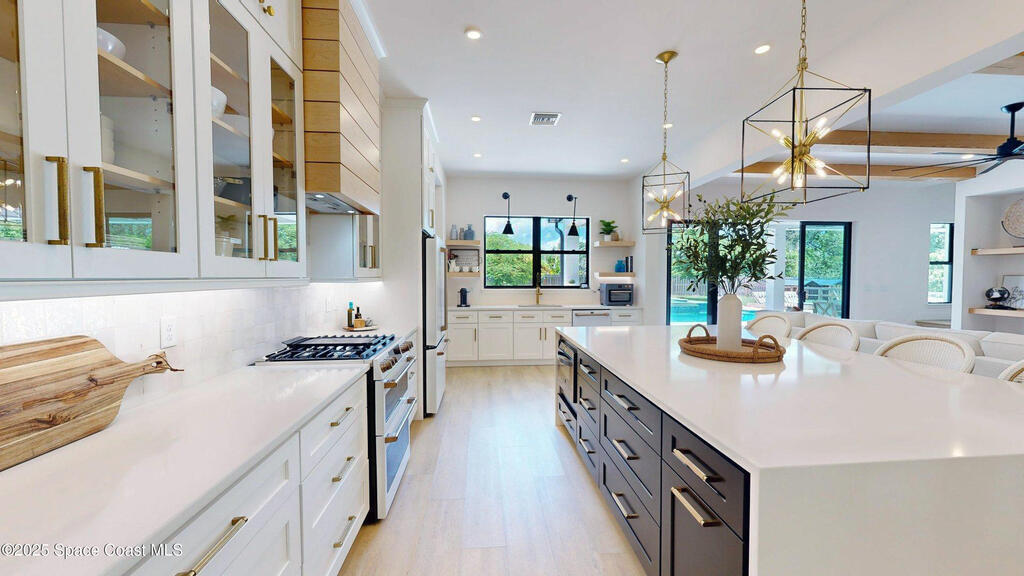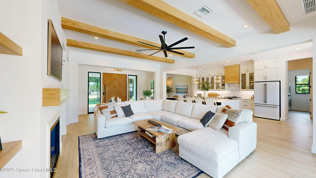 *Modern Farmhouse on 7 Private Acres with Lake & Pool*Rare opportunity to own a custom-built modern farmhouse on nearly 7 secluded, dry acres in the heart of Merritt Island. This 6-bed, 3-bath home features nearly 3,800 sq ft of stylish, functional living space--including an office, gym, and chef's kitchen with quartz waterfall island, GE Cafe appliances, and custom cabinetry. Enjoy a private 1.3-acre lake, heated pool & spa, outdoor kitchen, impact windows, propane fireplace, and a 1/4-mile private driveway. Zoned for top-rated schools and just minutes to beaches, shopping, and the Space Center. Room for horses, barn, or simply to relax in total serenity. Truly one-of-a-kind--schedule your private tour today! Seller recently completed a major front elevation improvement and landscape project.