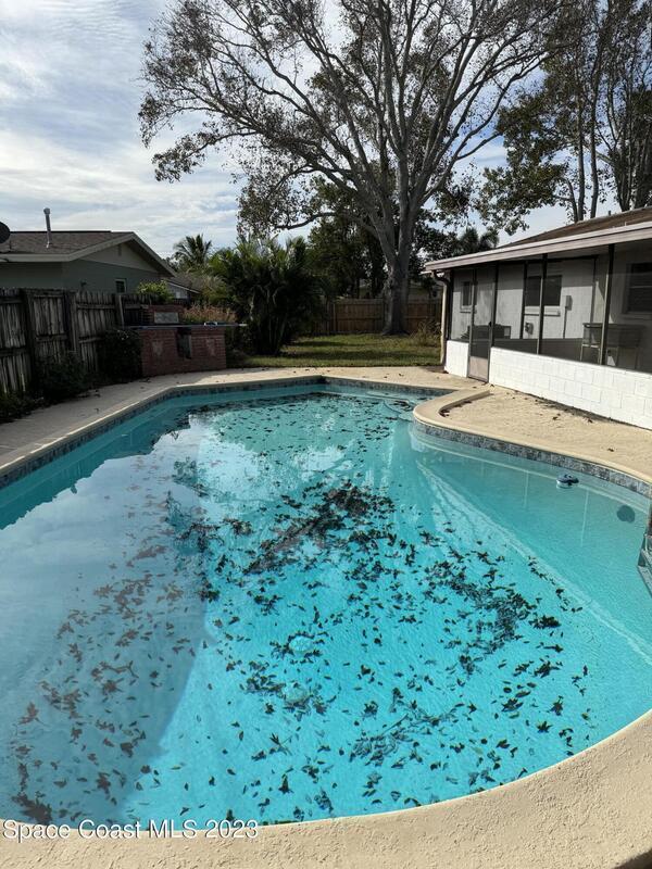 Great Merritt Island pool home, with lots of room for the family and entertaining. 2 large living rooms, spacious eat in kitchen, with lots of countertops and cabinets. Big screened in patio. Nice sized pool and still a lot of backyard green space. Pool and landscaping are included! Close to Cocoa Village and all it has to offer and Cocoa Beach!