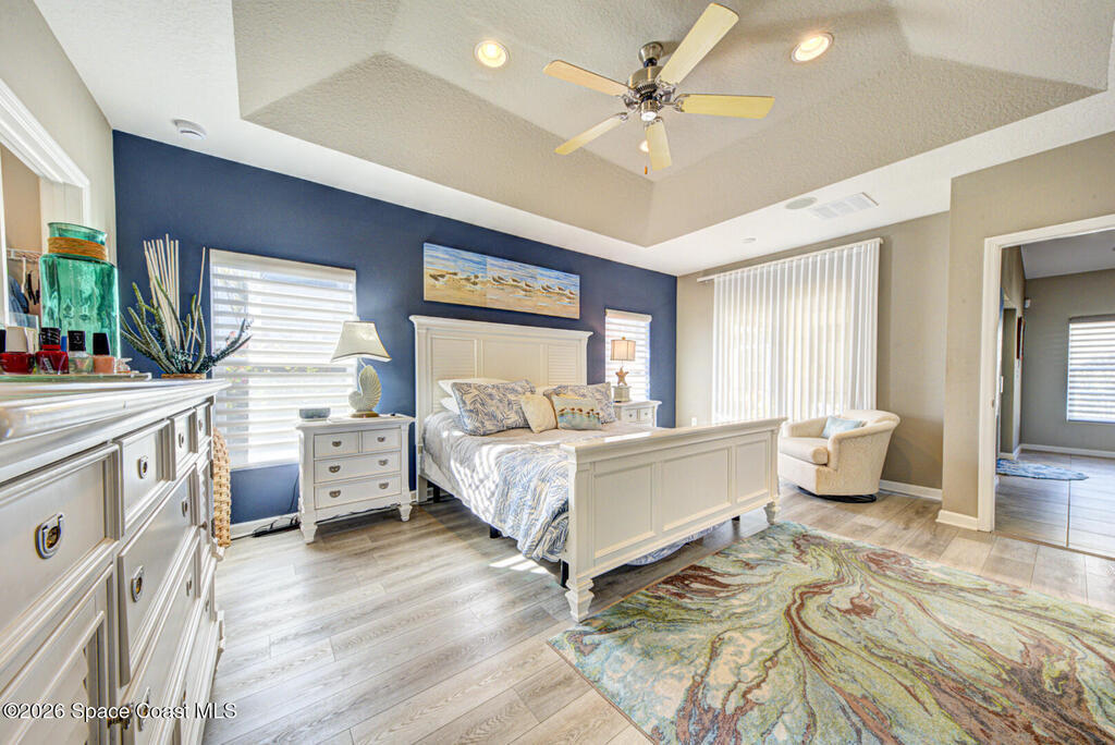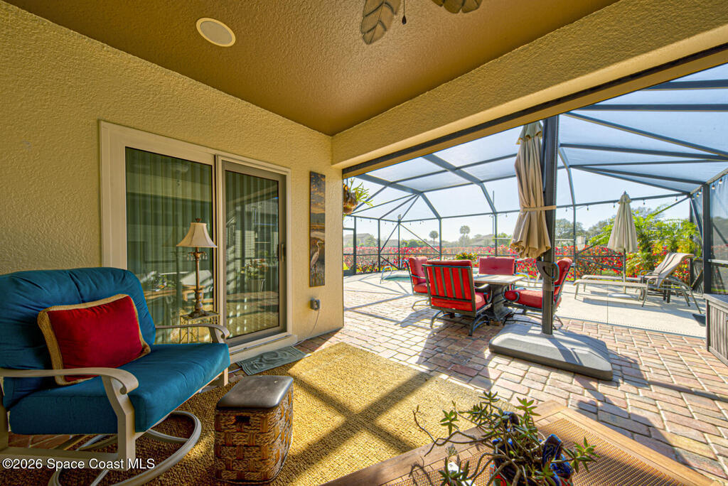 Welcome home and experience lakeside living in Melbourne's exclusive gated community of just 33 homes. This beautifully maintained 3BR/2BA pool home features an open-concept layout, versatile flex/den space, and stylish upgrades throughout. The kitchen showcases custom cabinetry, granite countertops, and stainless-steel appliances, flowing seamlessly into the main living areas for effortless everyday living and entertaining. The flex space features a custom-built-in unit with wine and beer coolers, adding both function and charm. Enjoy true Florida outdoor living with new sliding glass doors (2025) opening to a screened patio and private pool, along with a new pool heat pump and chlorinator (2025). Additional highlights include accordion storm shutters, a 2024 A/C system with ultraviolet air purification, and fresh exterior paint (2025). A perfect blend of comfort, thoughtful updates, and low-maintenance luxury, ideally located near major roadways, beaches, shopping, and dining.