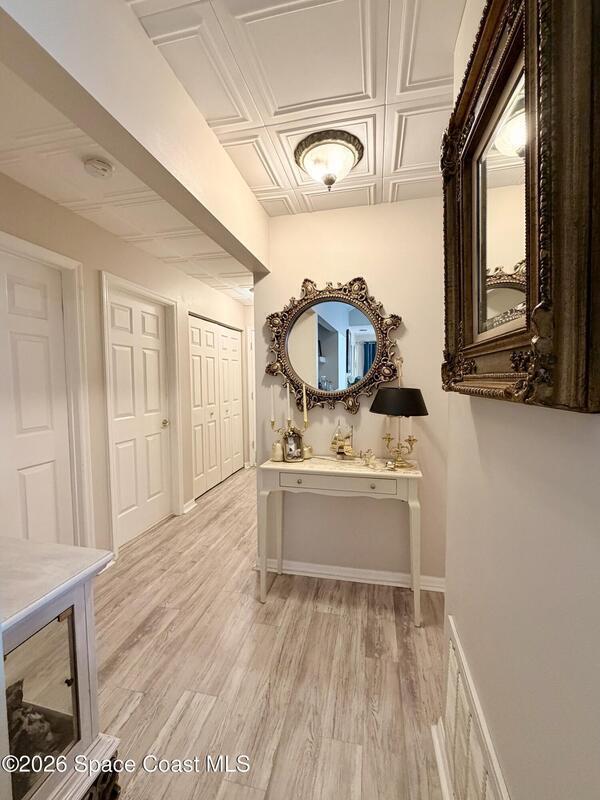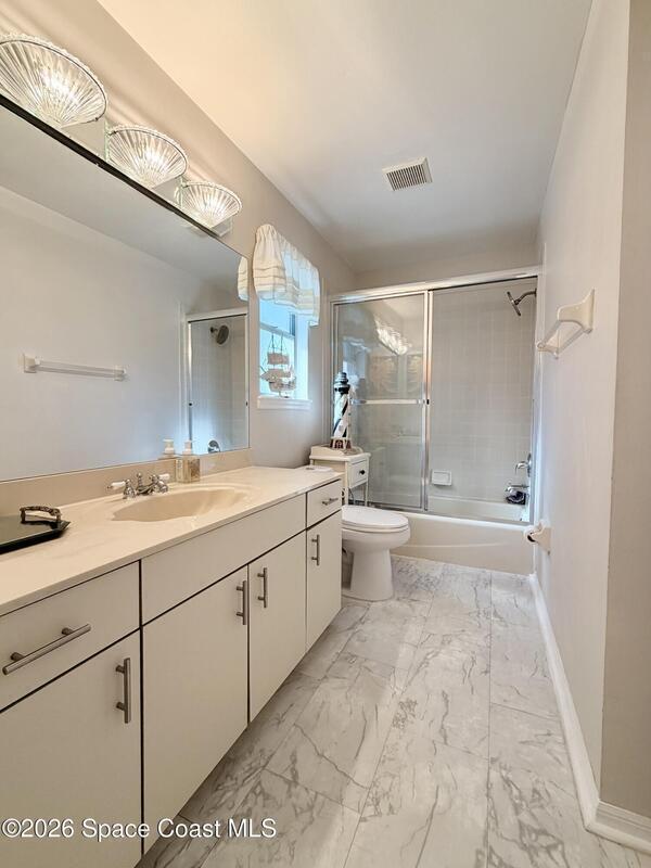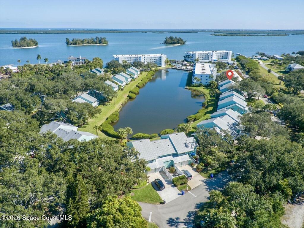 Experience effortless living in this Beautiful 2Bedroom 2Bath 1Car Garage end-unit with Lake Views in an in-demand gated community. Ideal as a second home or full-time retreat, offers low-maintenance, worry-free ownership. HOA includes manicured grounds, resort-style pool, clubhouse, tennis/pickleball court, water, trash, cable, and master insurance--electricity is your only utility. Enjoy a private marina with slips available for purchase or lease based on availability. Covered Entry, Foyer, Kitchen, Dining Room, Living Room, Florida Room and Inside Laundry. Features include stainless steel kitchen appliances, washer & dryer, built-in bar/storage, Lifeproof flooring, spa-style shower (Rain and waterfall options), 2023 AC, Accordian Shutters, Upgraded Fans and Lighting, 13mo HWA Home Warranty, garage door opener plus an extended driveway for 2 additional cars. Close to Shopping, Dining, Medical, Schools and More. Short Drive to Local Beaches and I95.