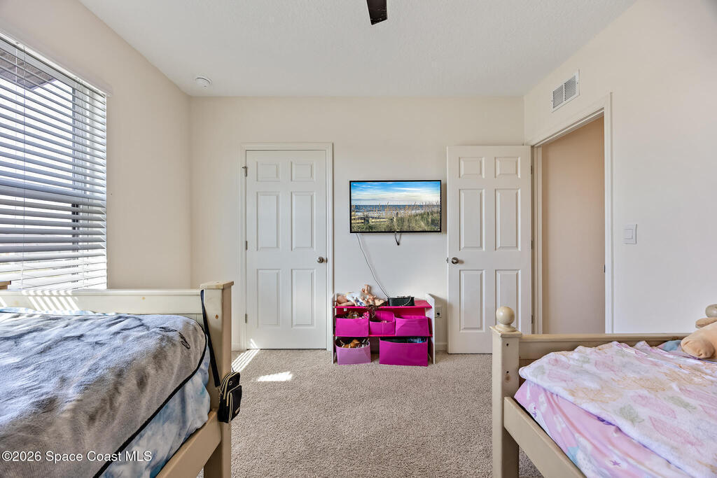 Welcome to Crystal Bay! This gated community features a resort style pool, fitness center, and dog park located in the quiet town of Grant. Recently built in 2023, this beautiful two story home is perfect for multi generational living and features a bedroom and bonus room on the first floor with all other bedrooms and separate loft/living area on the second floor. The backyard has been upgraded with an oversized paver patio and has a beautiful lake view. Split floorplan with all bedrooms being generous in size giving ample space for everyone. Excellent location close to all shopping, US-1, Publix and 30 minutes from the beach.