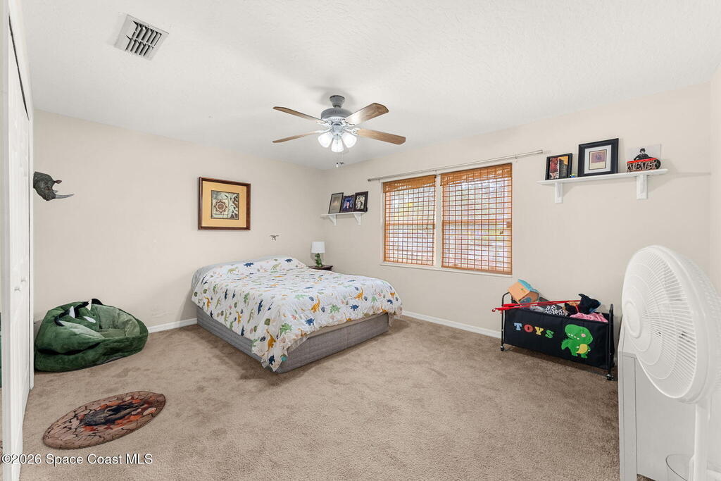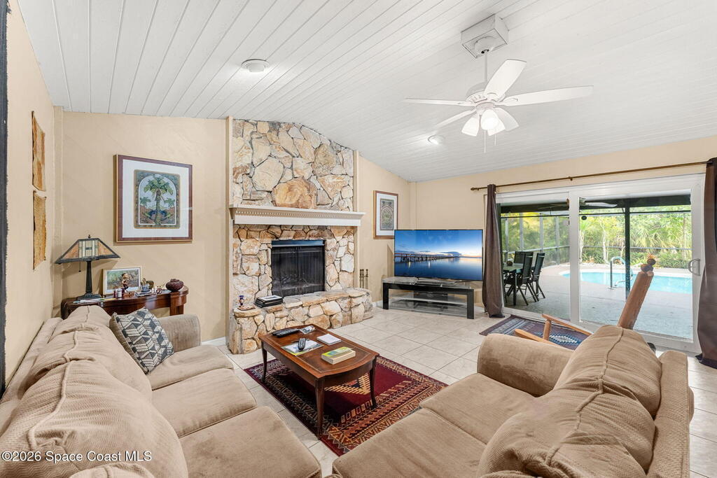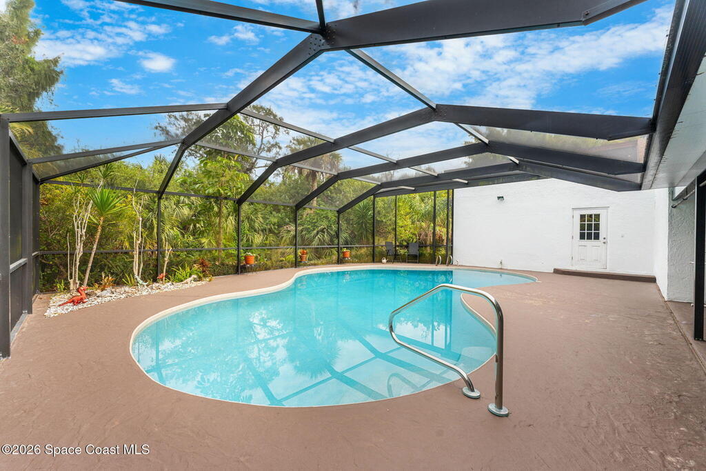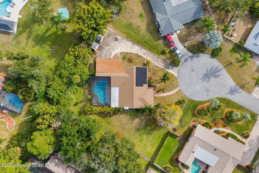 Location, location, location! This solid, well-maintained home is located in desirable South Merritt Island on a large .34-acre cul-de-sac lot with a fully fenced yard. The open, light, and bright floor plan is ideal for everyday living and entertaining, featuring a wood-burning fireplace and a split plan with two primary suites.Enjoy Florida living outdoors with a sparkling screened pool and spacious covered patio--perfect for relaxing or hosting guests. Numerous updates include a new roof, solar panels that service the entire home, updated irrigation system, AC replaced in 2025 with ductwork cleaned and serviced, and a pool pump replaced in 2021.Located in the sought-after Candy Cane Lane neighborhood, just minutes from shopping, dining, and the beach. A fantastic opportunity to own a move-in-ready home in one of Merritt Island's most convenient and charming locations.