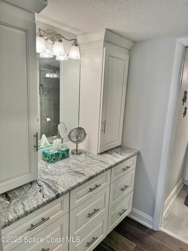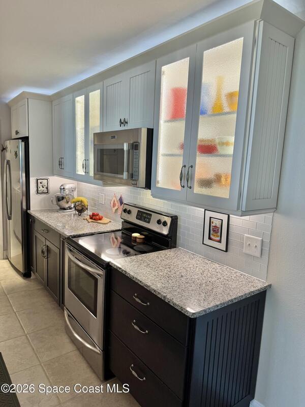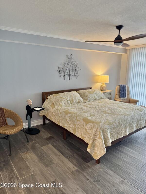 7th FLOOR TWO BEDROOM TWO BATH CONDO, ABSOLUTELY BEAUTIFUL UNIT, SEE THE OCEAN EAST & NORTH VIEW & FROM YOUR LARGE BALCONY WATCH SUN RISES, CRUISE SHIPS GOING BY, & SEE ALL THE ROCKET LAUNCHES ESPECIALLY THE NIGHT ONES. ENJOY SPECTACULAR SUN SETS. YOU WILL ABSOLUTELY LOVE THIS ENLARGED CUSTOM DESIGNED KITCHEN, THE TOP CABINETS WITH GLASS DOORS & LIGHTS, CROWN MOLDING, & ABOVE TO CEILING LIGHTING, BOTTOM CABINETS ARE CUSTON DARK COLOR , WITH BEAUTIFUL GRANITE COUNTER TOPS. STAINLESS APPLIANCES, A NICE LAUNDRY ROOM , ALLOWING A FULL SIZE WASHER & DRYER & PANTRY. A NICE SIZE DINING & LIVING ROOM TO SIT & ENJOY THE BEAUTIFUL OCEAN VIEW. LARGE MASTER BEDROOM, WITH UP GRADED STORM DOORS, WALK IN CLOSET WITH A PERSONALIZED CLOSET SYSTEM, A STYLISH VANITY AREA WITH CABINETS & DRAWERS . GORGEOUS MASTER BATH. GUEST BEDROOM HAS A NICE SIZE MURPHY BED & STORAGE CABINET, WALK IN CLOSET. VILLAGER CONDOMINIUM HAS A COMPLETED MILESTONE INSPECTION, & STRONG RESERVES,
