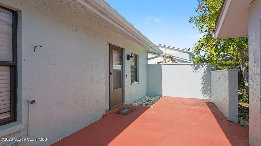 Experience coastal living at its best in this charming single-story townhome in Indian Harbour Beach. This spacious 2-bedroom, 2-bathroom home offers comfort and privacy in a well-kept community just minutes from the shore. Both bathrooms feature tasteful updates with modern finishes, and the interior boasts laminate and tile flooring along with fresh paint. Additional highlights include a single-car garage, outdoor shower, recessed lighting, ample storage, and no popcorn ceilings. The community has recently enjoyed upgrades like a newer roof and freshly painted exteriors. Enjoy being close to beaches, shopping, dining, and top-rated schools, all within a quiet, established neighborhood.HOA is responsible for exterior maintenance, roof and community pool.