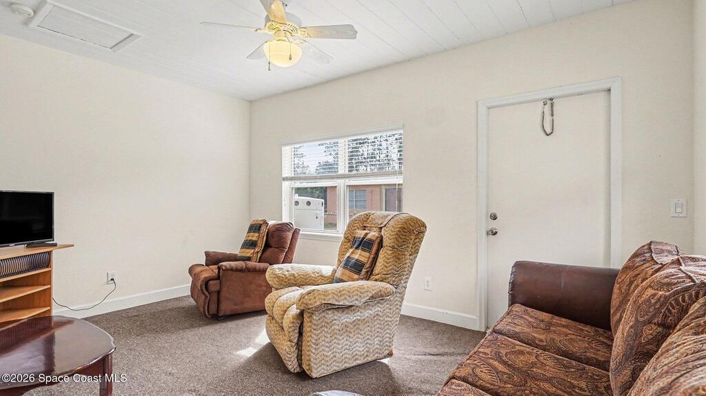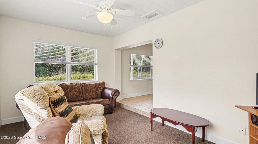 In the heart of W. Melbourne, this charming home offers convenience and tranquility. Minutes from I-95, commuting throughout Brevard or traveling to OIA is a breeze, shopping, dining, medical facilities, & everyday necessities are all close by. Tucked away on a quiet dead-end street with a wooded area across the road, provides peaceful living with no through traffic. The former carport has been enclosed, adding valuable square footage and versatile living space with its own entry and exit access. Inside, you'll also find an indoor laundry room with additional exterior access for added functionality. The large backyard is mostly fenced, offering plenty of room to relax, entertain, or garden. Major renovations completed in 2009 included all plumbing, electrical, insulation, double-pane windows, window treatments, HVAC and ductwork, kitchen cabinetry, appliances, bathroom updates, and tile throughout the main area. The roof was replaced in 2020, and ceiling fans in every room.